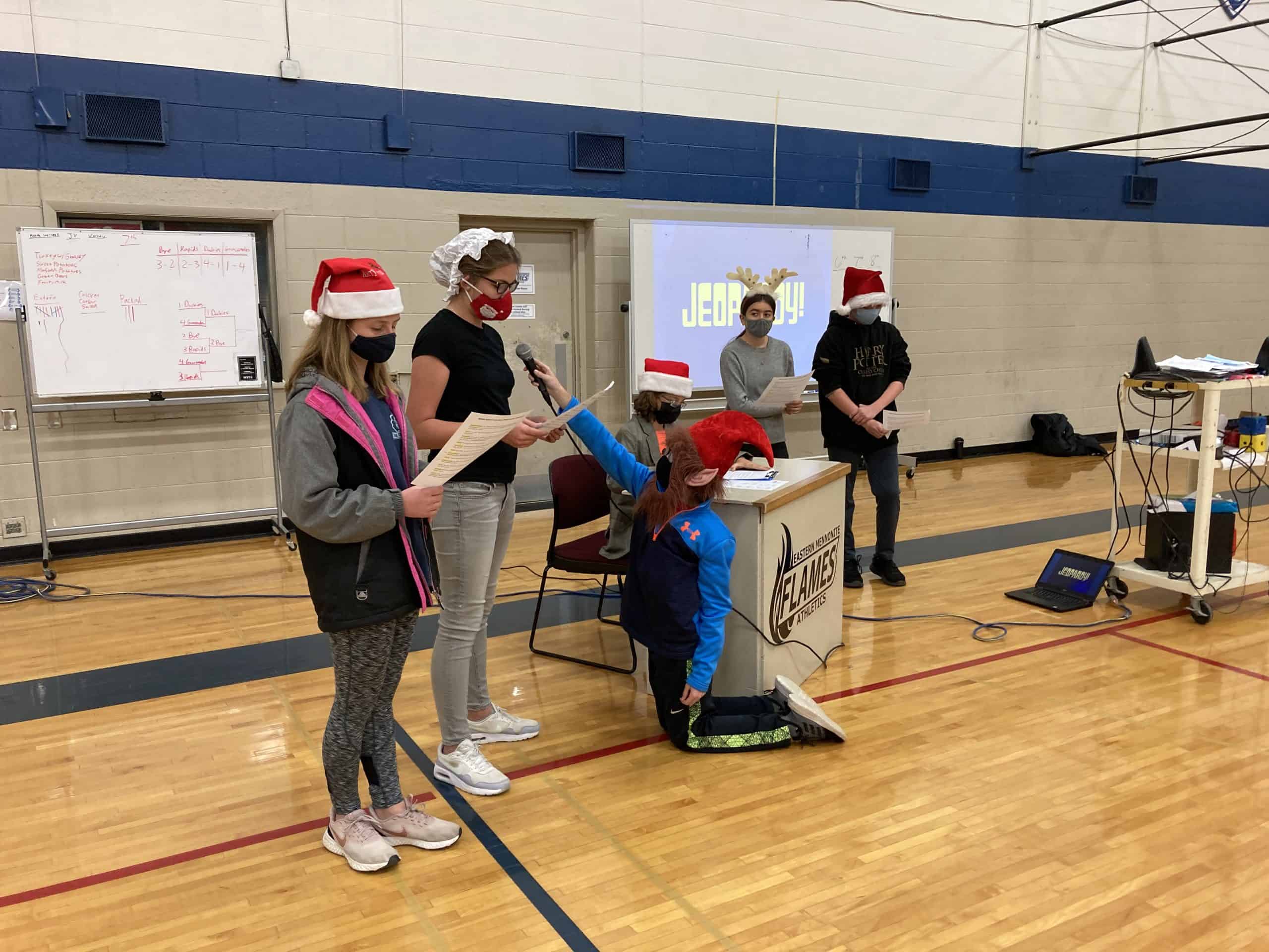 Soon after returning from Christmas break, students brought their fund drive gifts to separate middle and high school offering chapels. As packets were collected, student committee members, paired with a class sponsor, entered amounts on a spread sheet. Periodically, class totals were projected so students could share the excitement of the opportunity to win a class outing for participation.