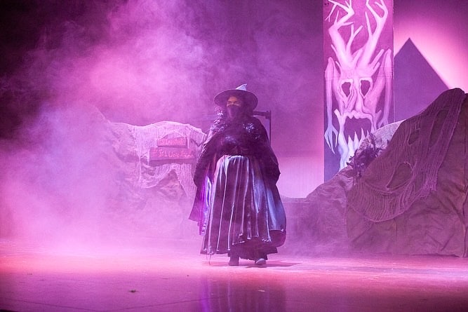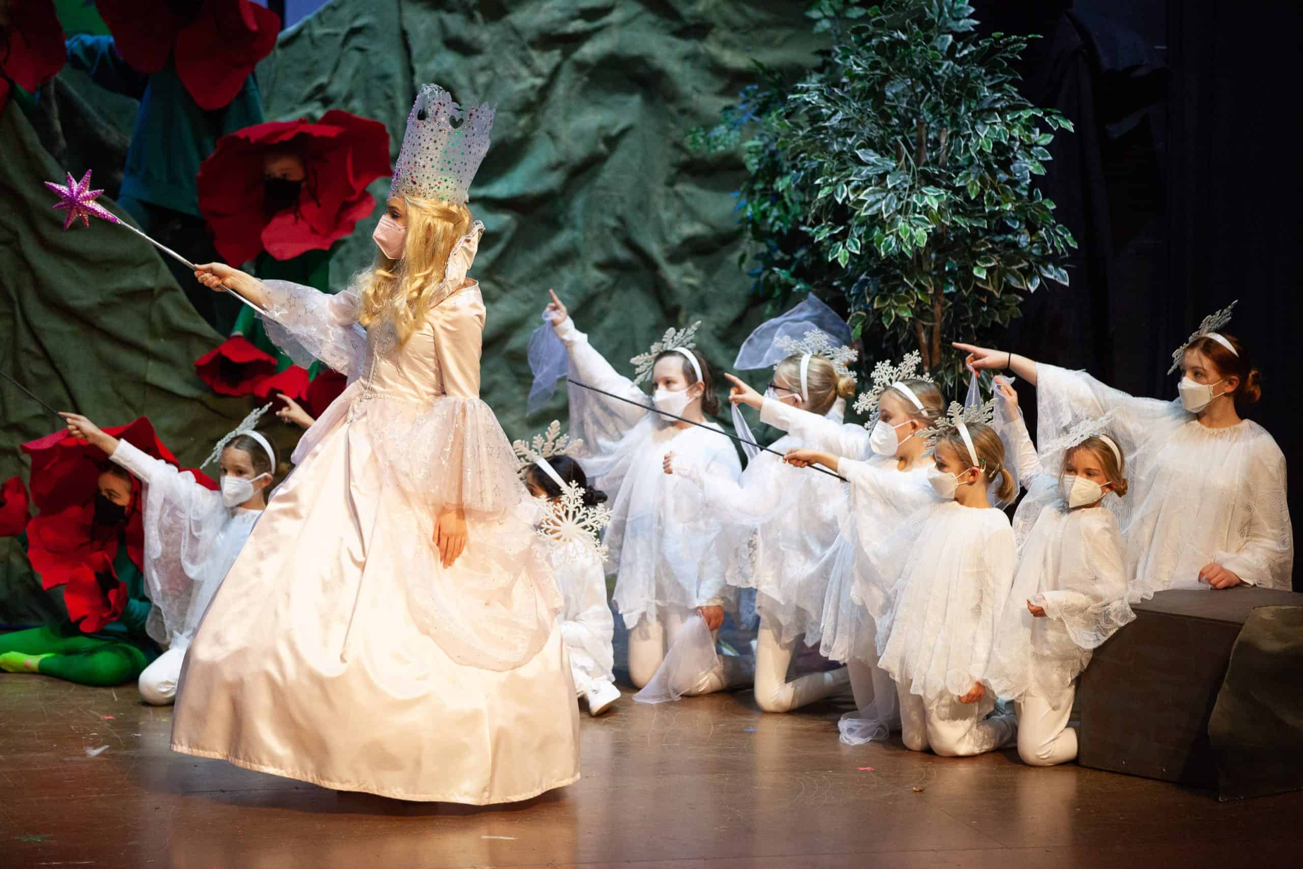 In Munchkinland, Dorothy met Glinda, the Good Witch of the North, played by junior Naomi Diener, and the Munchkins, played by more than 20 elementary school students clad in candy-colored outfits.