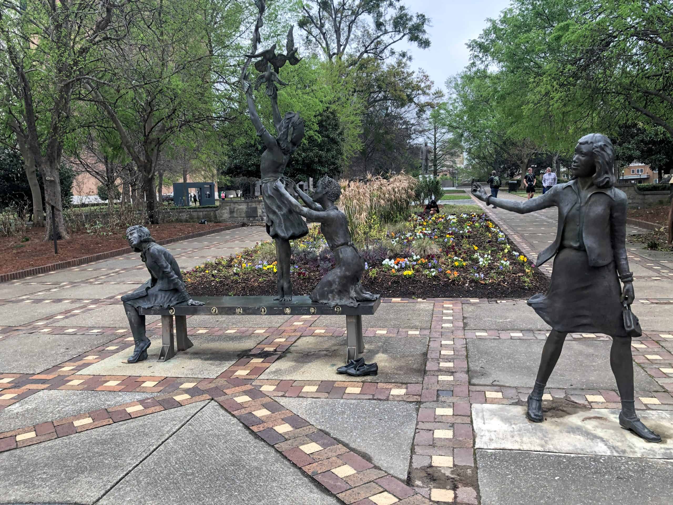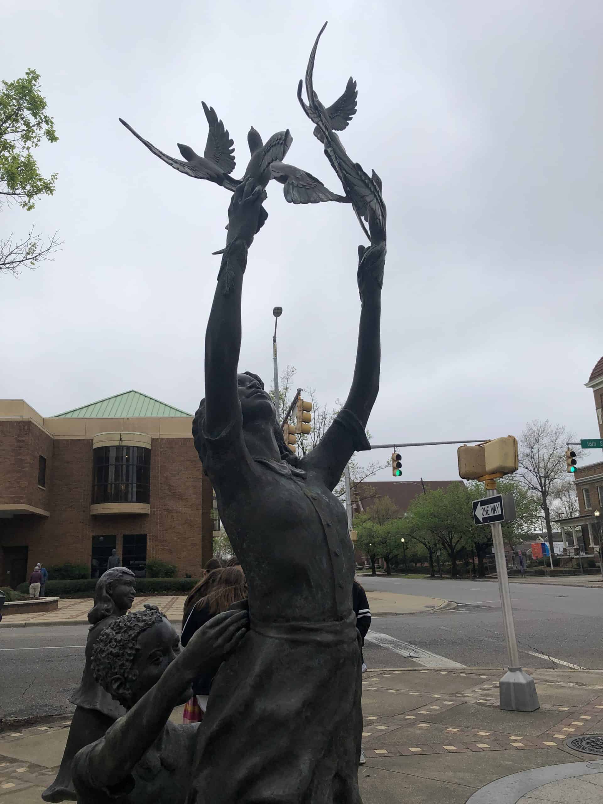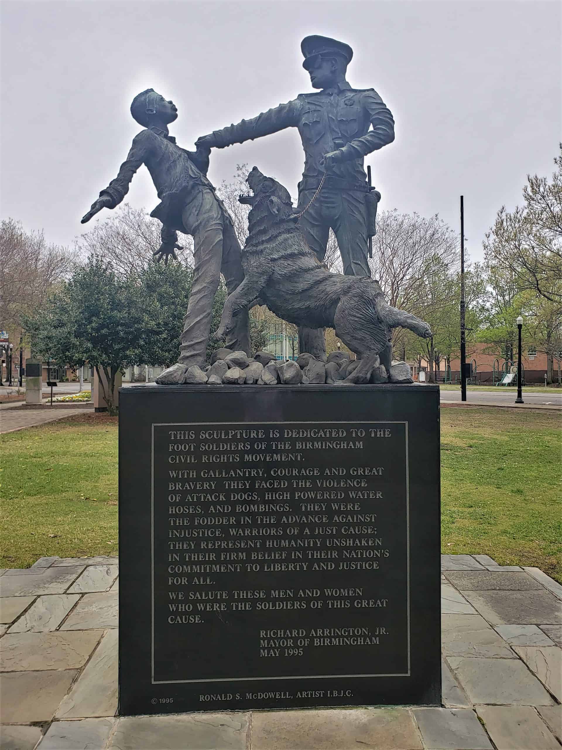 Across the street, statues in the Kelly Ingram Park memorialize the girls who were killed, as well as hundreds of other children and teens who were part of protests on those streets, enduring beatings, biting dogs, and fire hoses.