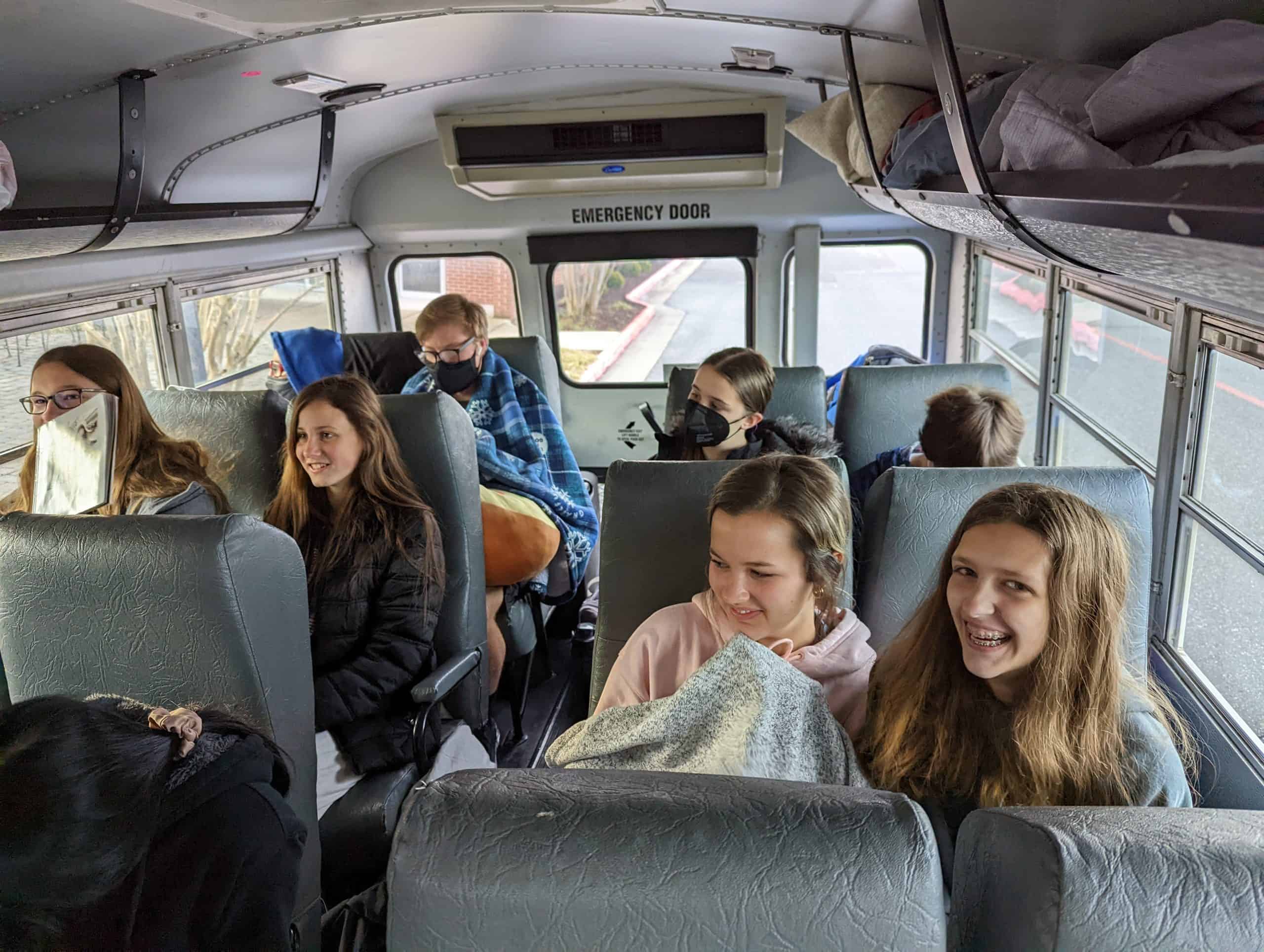 The E-term participants were: Eleanor Albers ‘25, Maddy Kratz ‘25, Jimin Lee ‘24, Isis Long ‘25, Christian Meixner ‘24, Armando Perez ‘24, Kate Piper ‘25, Noelle Rankin ‘25, Catherine Scherpereel ‘25, Brianna Showalter ‘25. Maria Archer, K-8 principal, and Andrea Wenger, director of advancement, led from EMS, with Scott Hartman of Mennonite Mission Network. Delbert Wenger drove the bus.