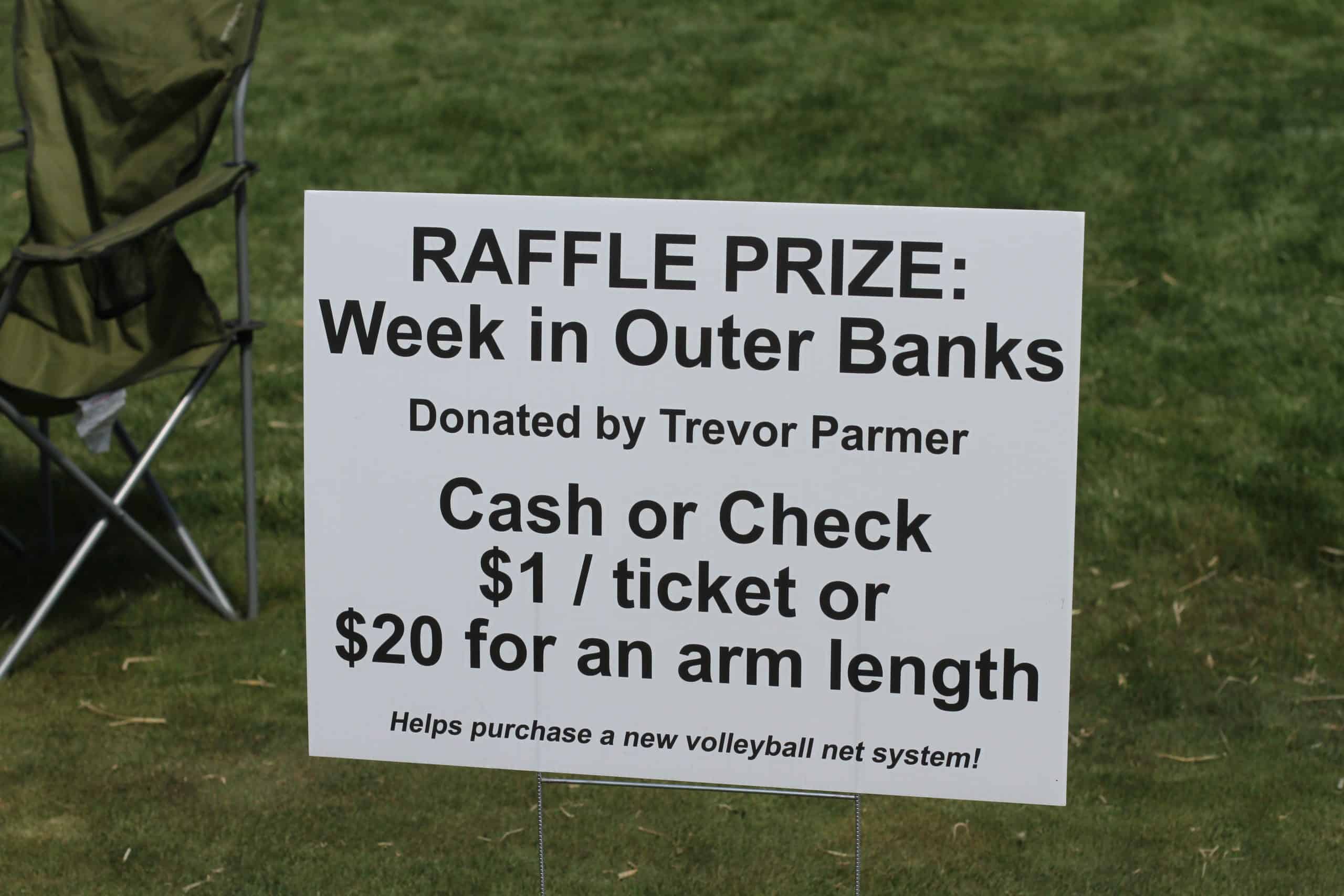 It was the first time a raffle was added to the mix which raised $1,353 for a new volleyball net system. The winner, Jeff Forbes, earned a week at the Outer Banks, thanks to donor Trevor Parmer ’90, committee co-chair.
