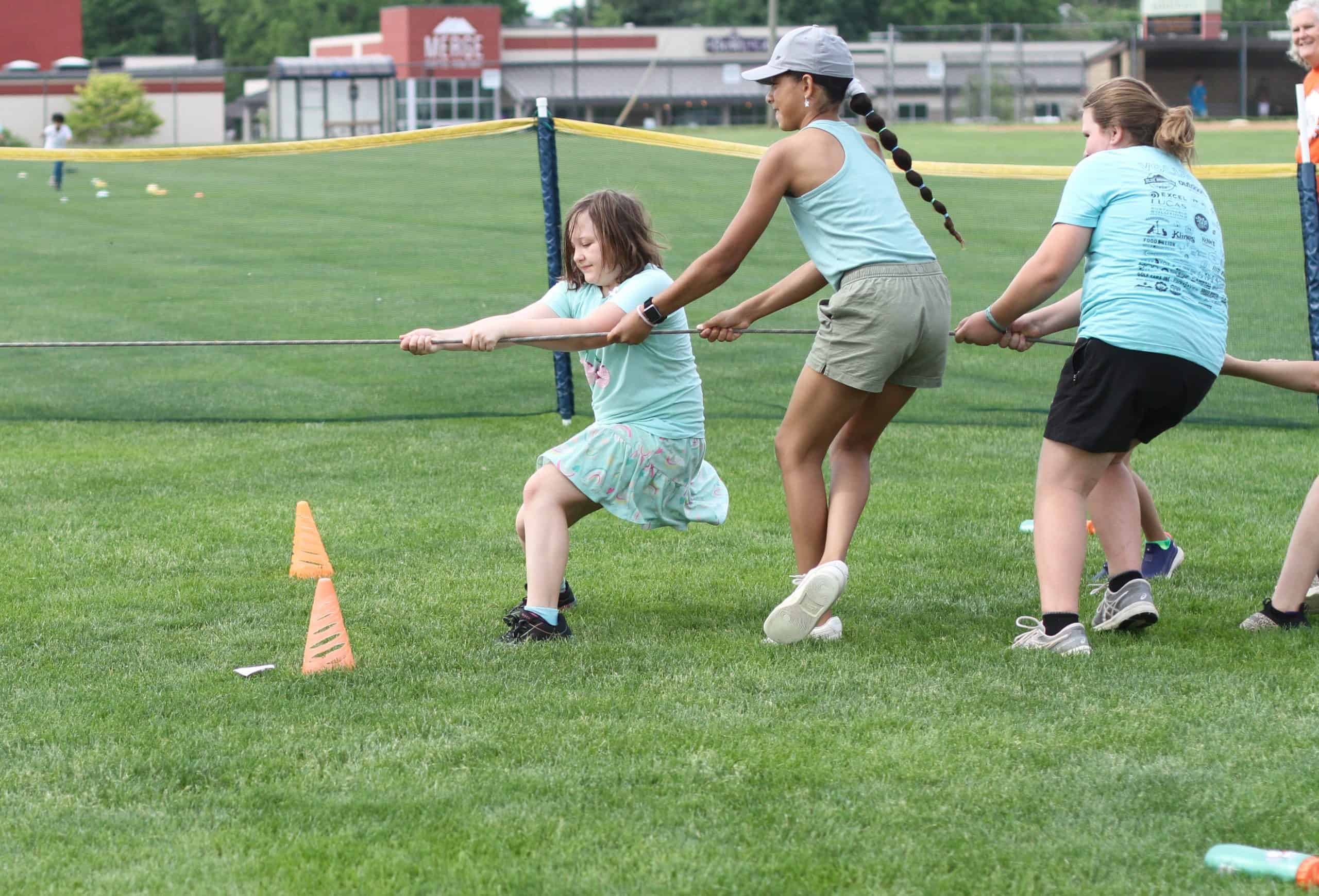 Eighth grade students and girls varsity soccer team set up and facilitated for the elementary division’s field day experience, including preparing a cool healthy snack and a lot of cold water for a hot day.