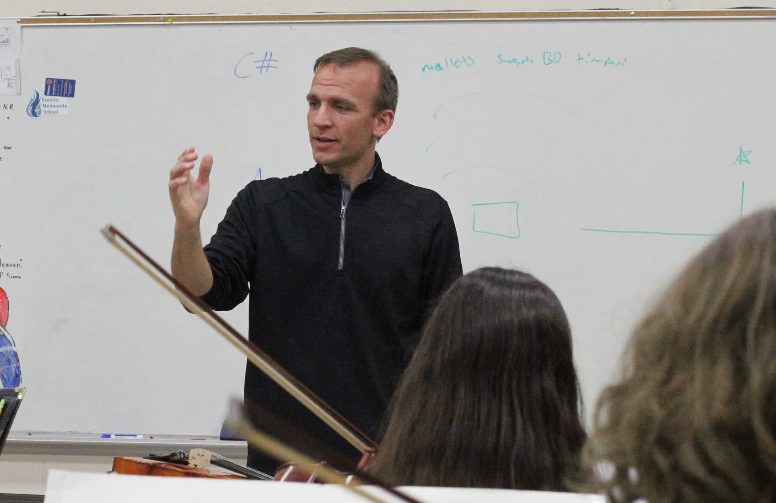 Joel Ross ‘01 and Amy Birdsong were guest conductors for EMS and Dock Academy instrumentalists at EMS on March 3 and 4. Sixty-eight students, including 24 from Dock Academy in Lansdale, Pa., benefited from the encouragement and expertise brought by Ross and Birdsong.