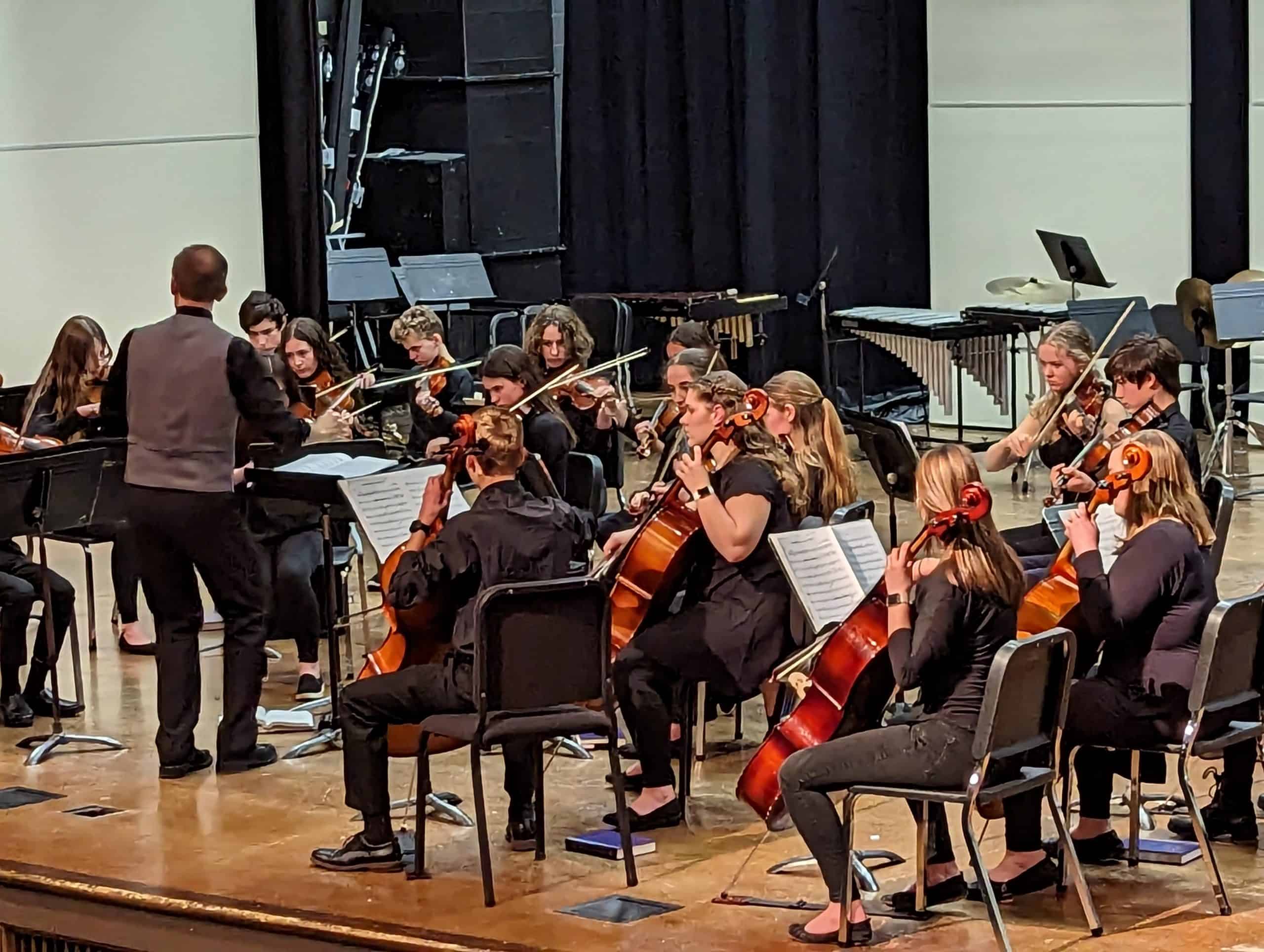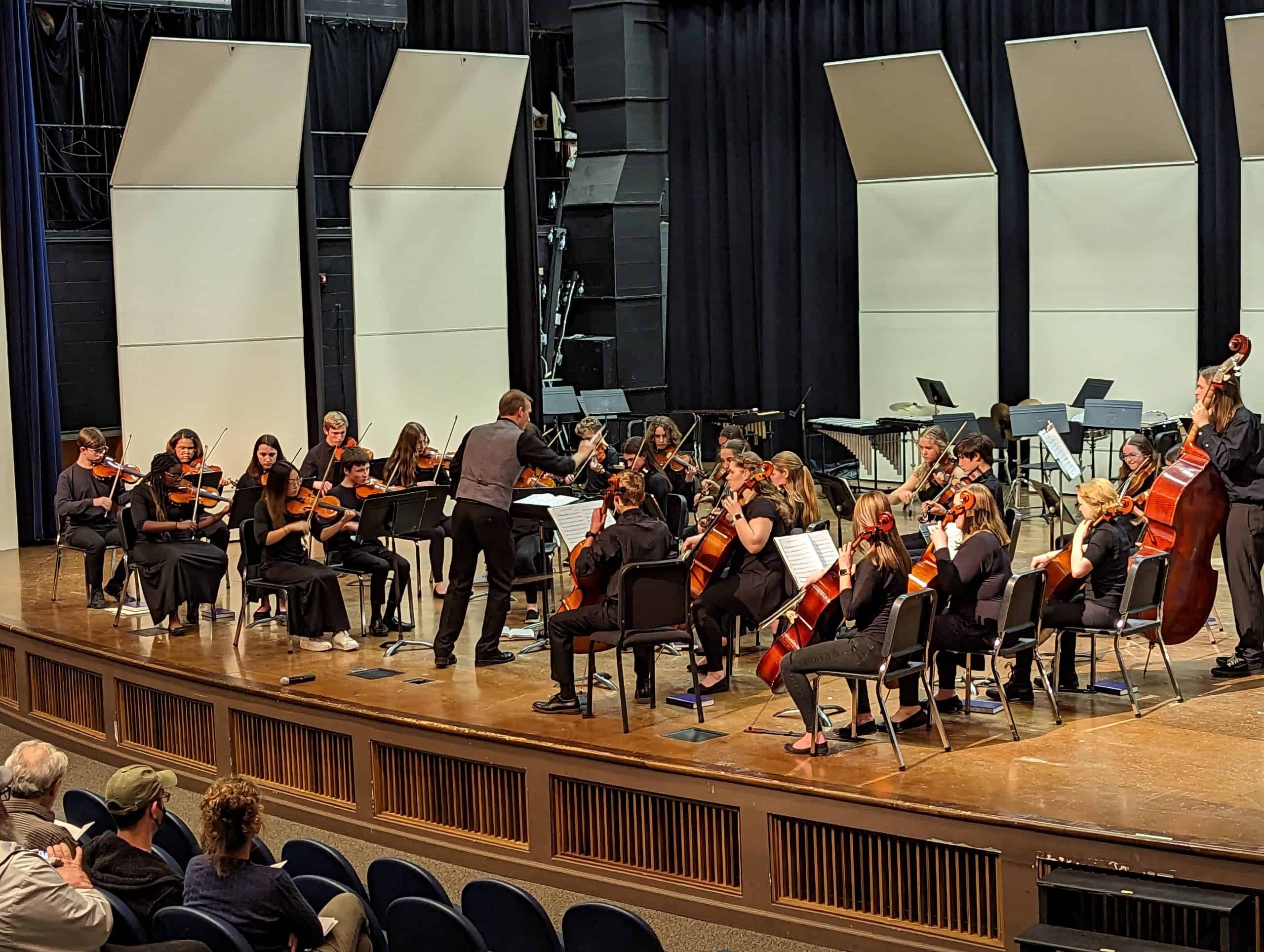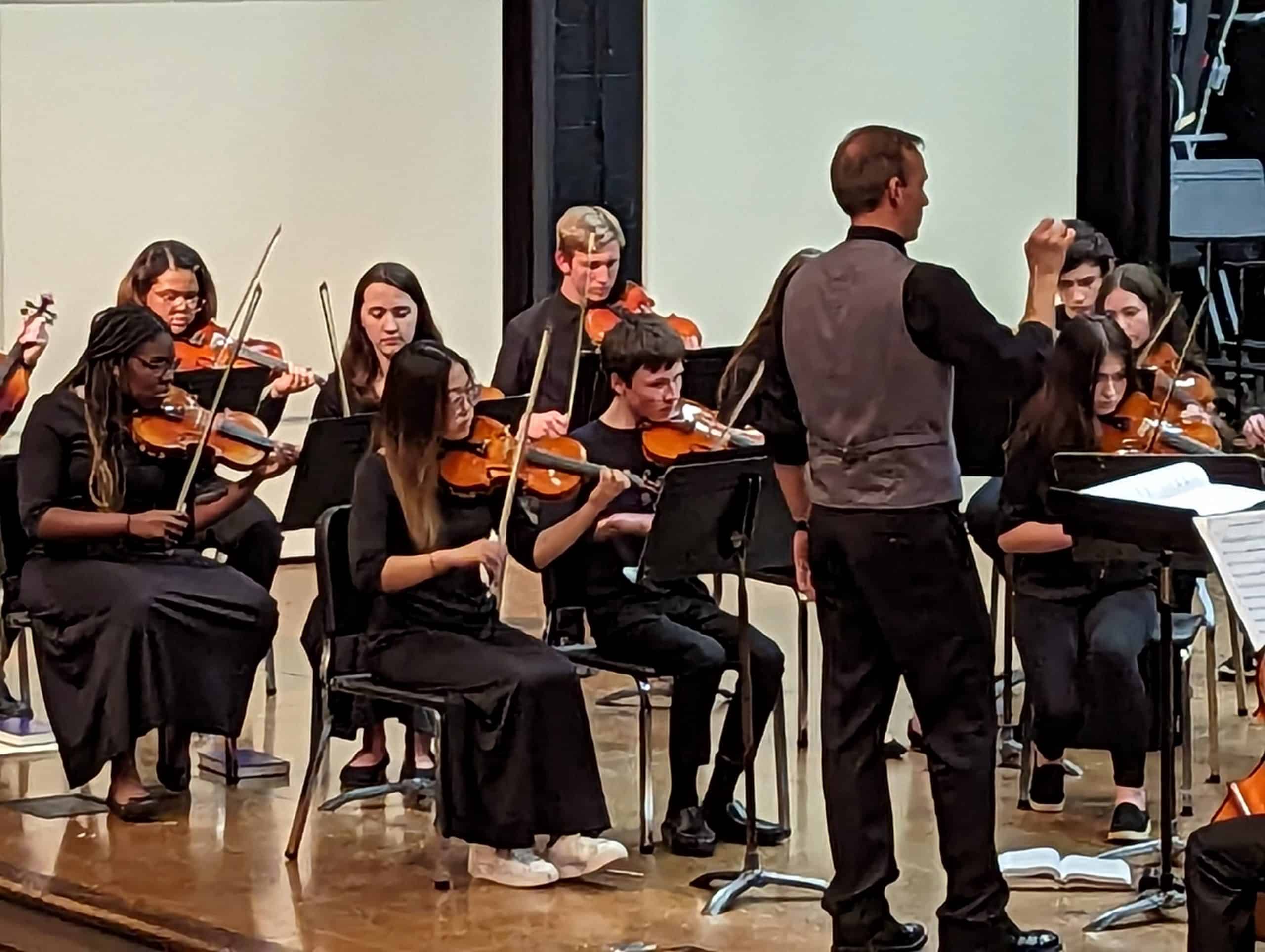 Under Ross’ direction, the orchestra performed “Brandenburg Concerto No. 4, 3rd movement,” by J.S. Bach, arr. M. Jasinksi; “Shaker Dance and Lament,” by J. Clemens; “Sinfonia in Gi Minor,” J Ross; “Moondance,” by Va. Morrison, arr by M. Hopkins; “Flop-eared Mule,” a traditionalal American tune, arranged by A. Dabczynski.