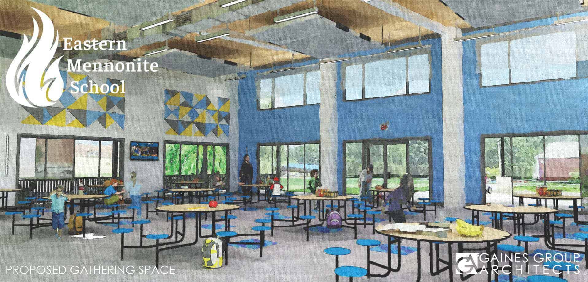 The act of gathering nurtures cross-grade relationships, builds trust, creates leadership opportunities, and enables us to care for one another. It is the “heart” of EMES — it is our “living room!” In 2019, Eastern Mennonite Elementary School settled into a beautifully renovated building, adjacent to the school’s original upper building, but it was missing – a dedicated place to gather. Learn more about the gathering space.