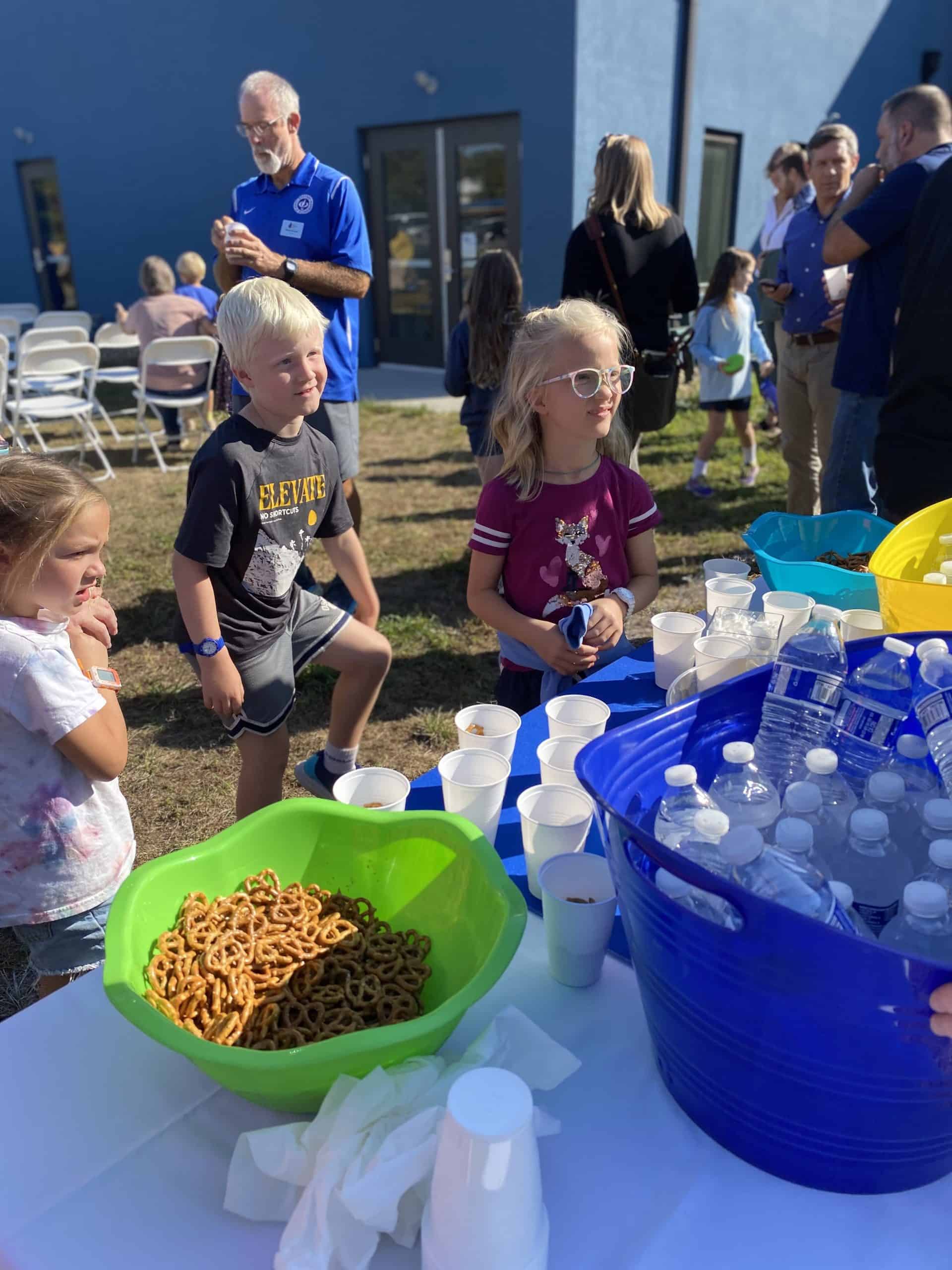 Maria Archer, elementary principal, welcomed everyone, and shared how important this space will be as the “heart” of the school. Students applauded and cheered for supporters who have made this possible, and learned that there are many people who care about them: their parents and guardians, their teachers, and donors to the school who may not even know them! Dr. Leaman thanked our donors who offered a challenge and everyone who came together to match those funds.