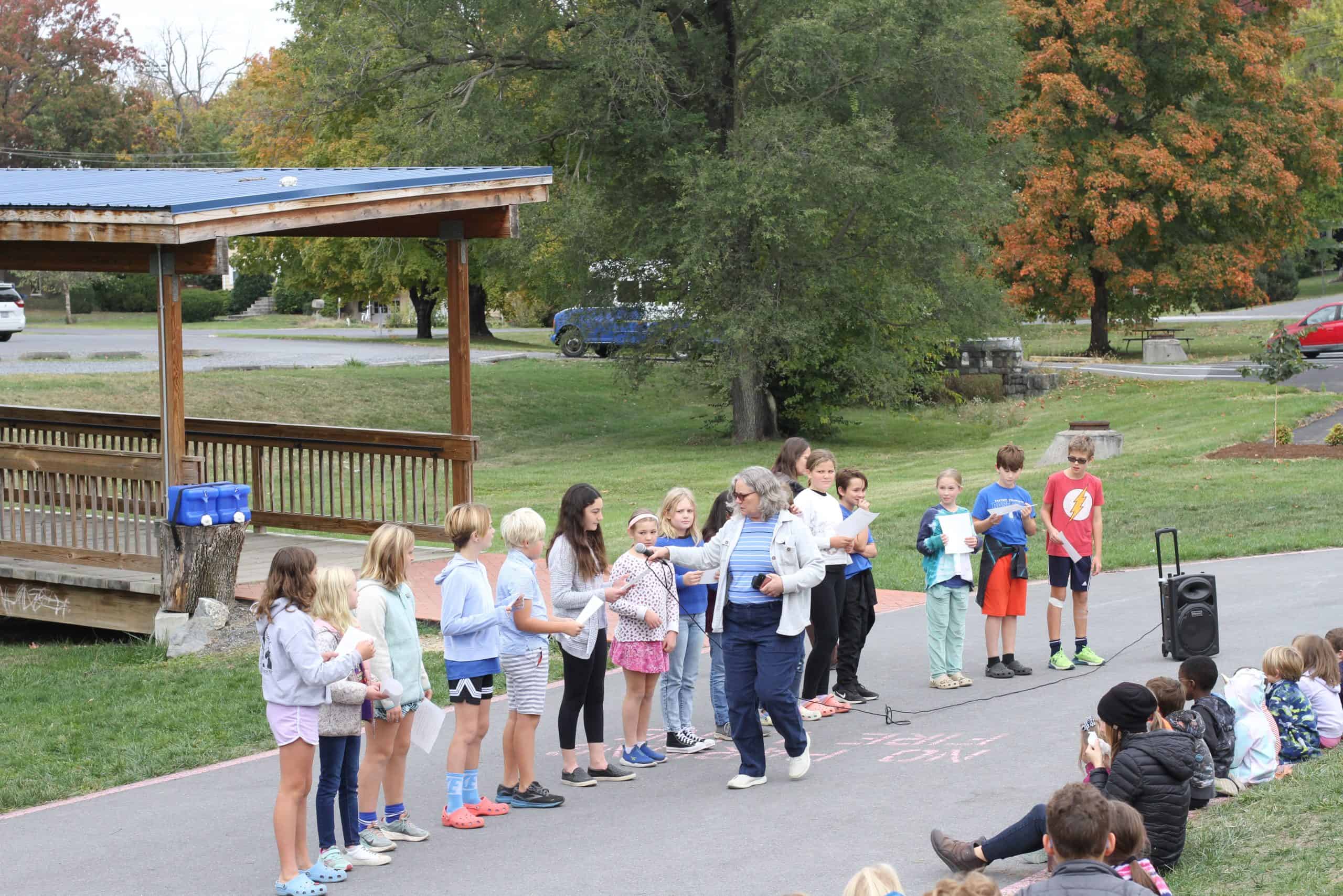 The dove is a symbol of love and peace. The 5th grade class leads the elementary school in a parade around the school campus with the dove at the front. After the parade, three 5th grade students asked to share passages of peace from the Hebrew tradition, Quran and the Christian Bible.