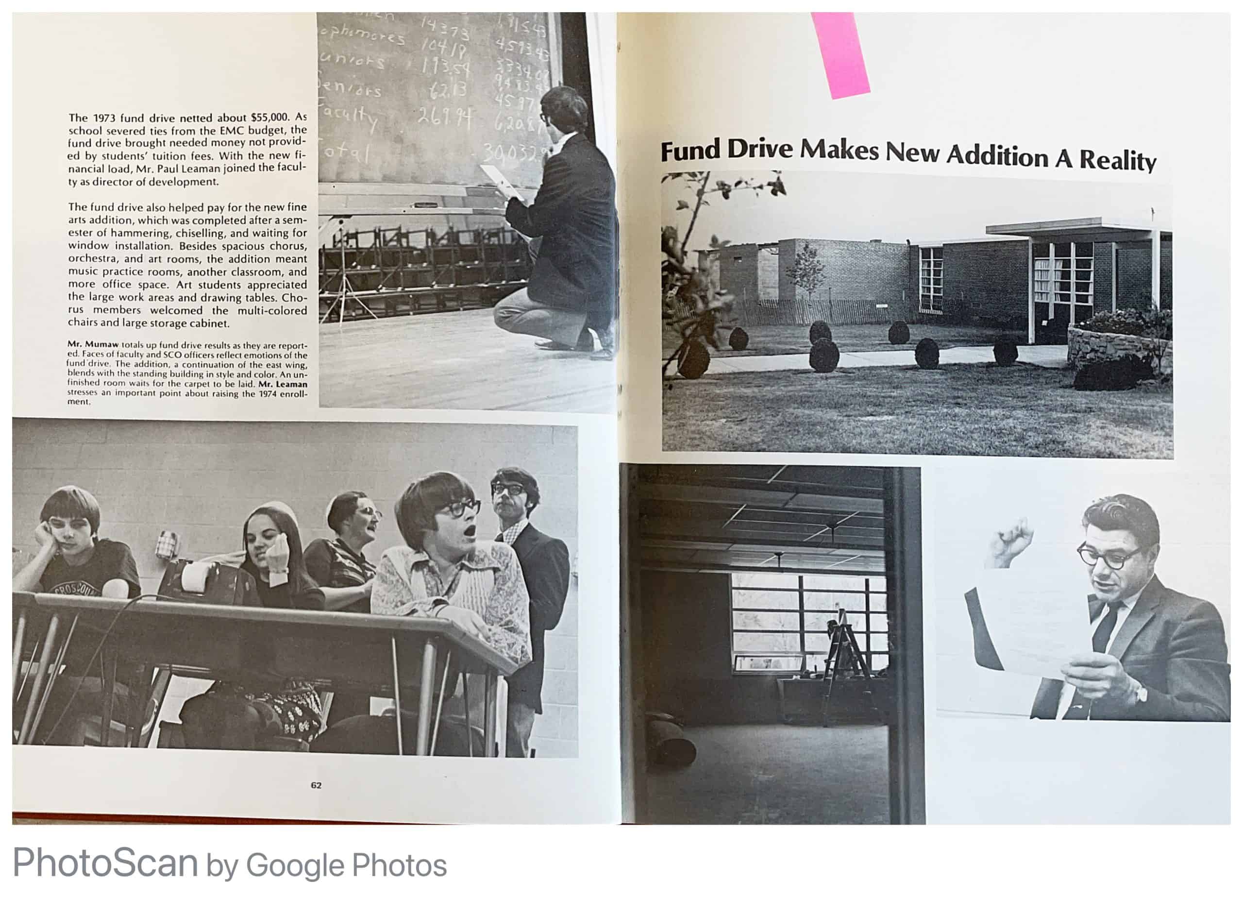 The 1973 fund drive not only supported operations but also played a crucial role in shaping the school’s physical landscape. The construction process of the fine arts addition was a symphony of hammering, chiseling, and patient anticipation for the installation of windows. As the structure took form, it became more than just a building; it became a hub for creativity and expression.