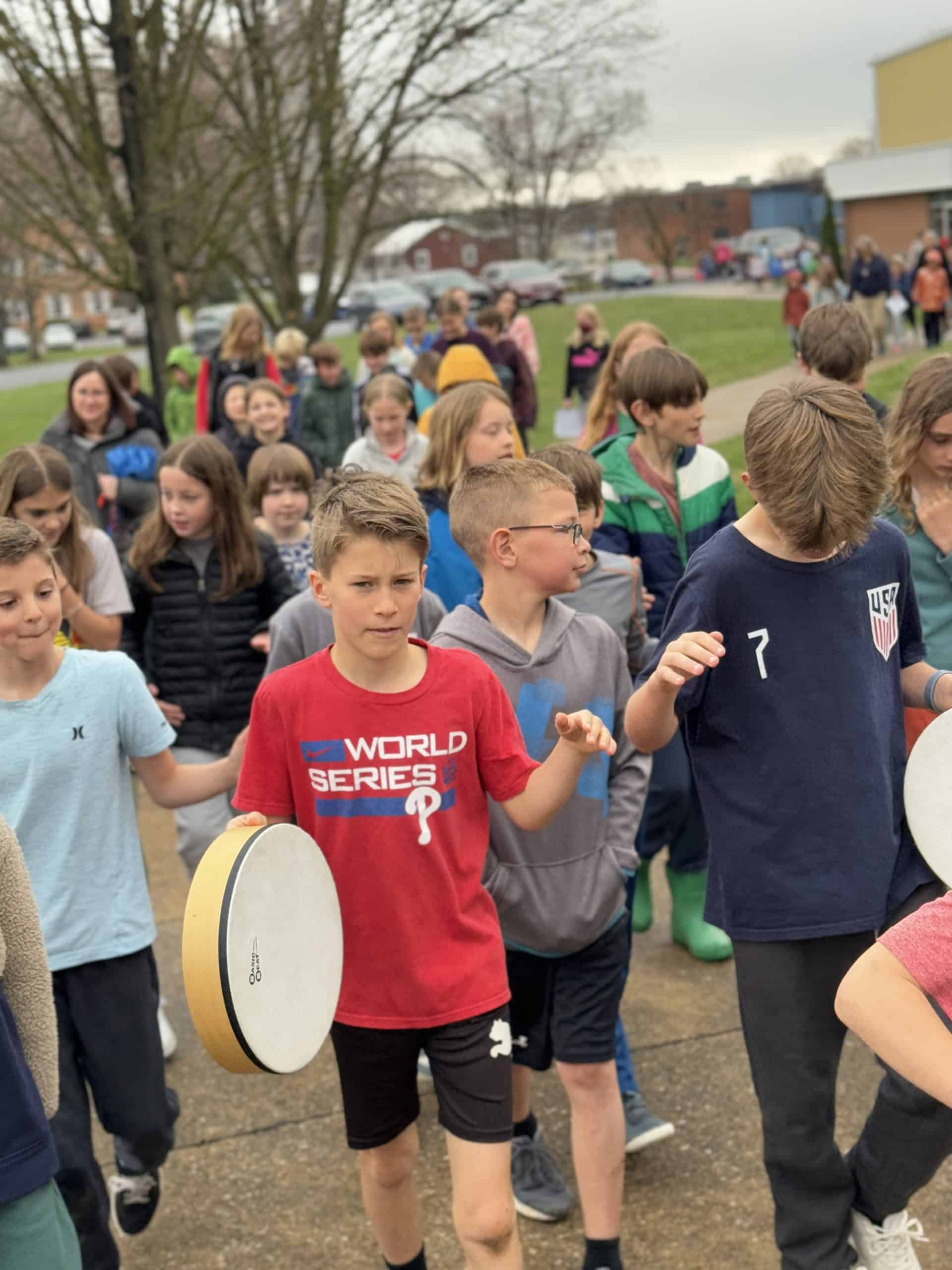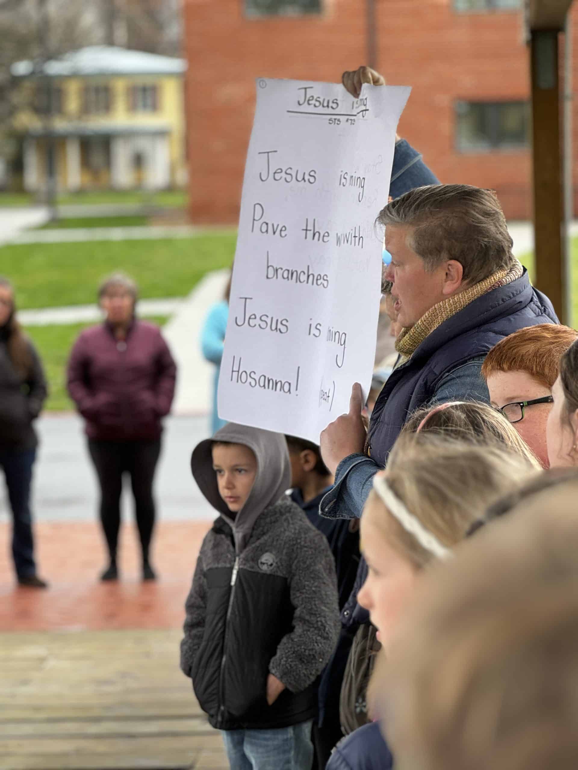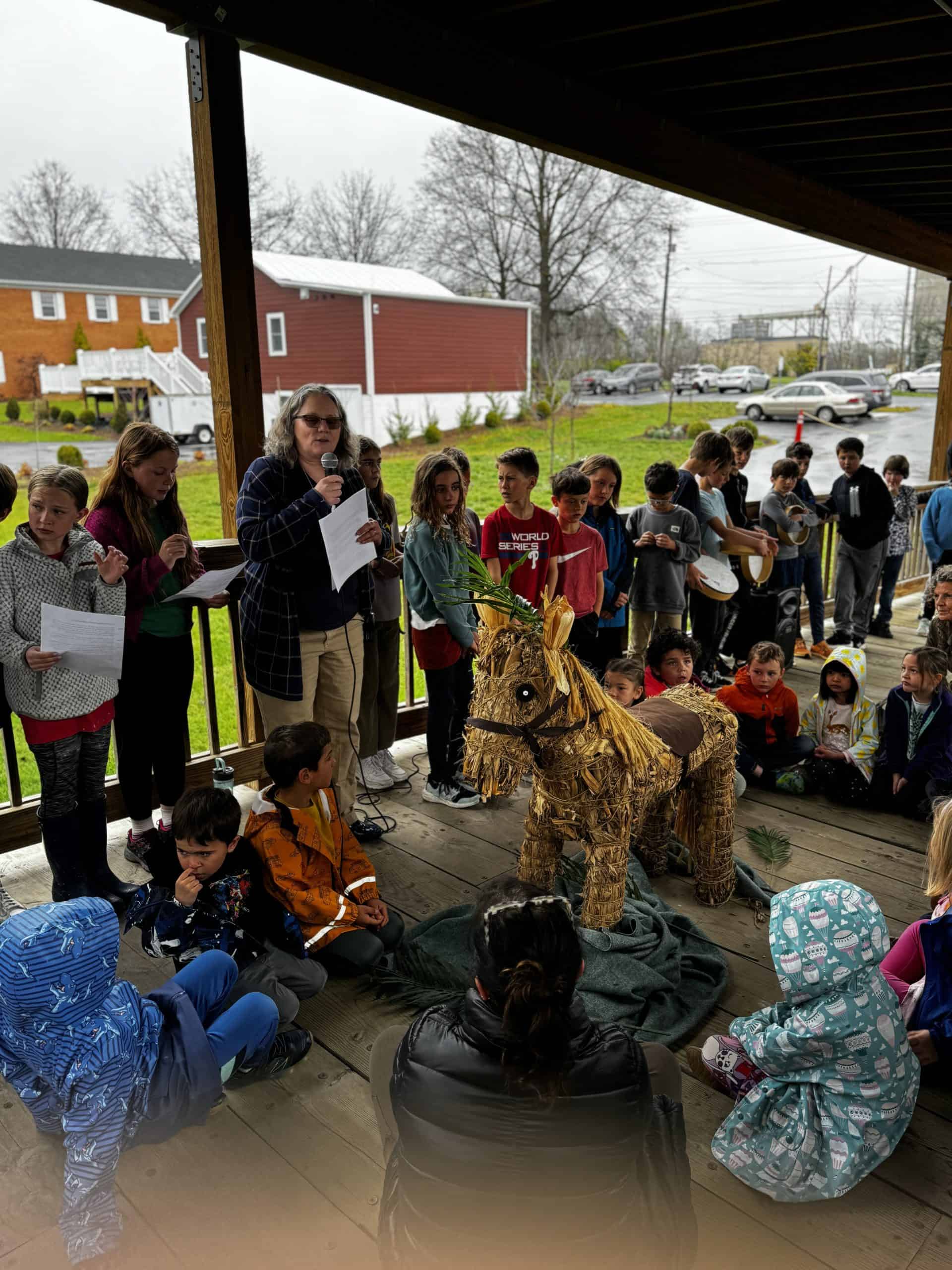 On a cloudy rainy morning, EMES students gathered beneath the protection of the bridge. Easter week at EMES is marked with a passion walk, a tradition since 2005, where students engage in reflection and song, “Jesus is coming, pave the way with branches, Jesus is coming, HOSANNA!” 5th grade read as their peers listened to the story, absorbing the significance of the moment.
