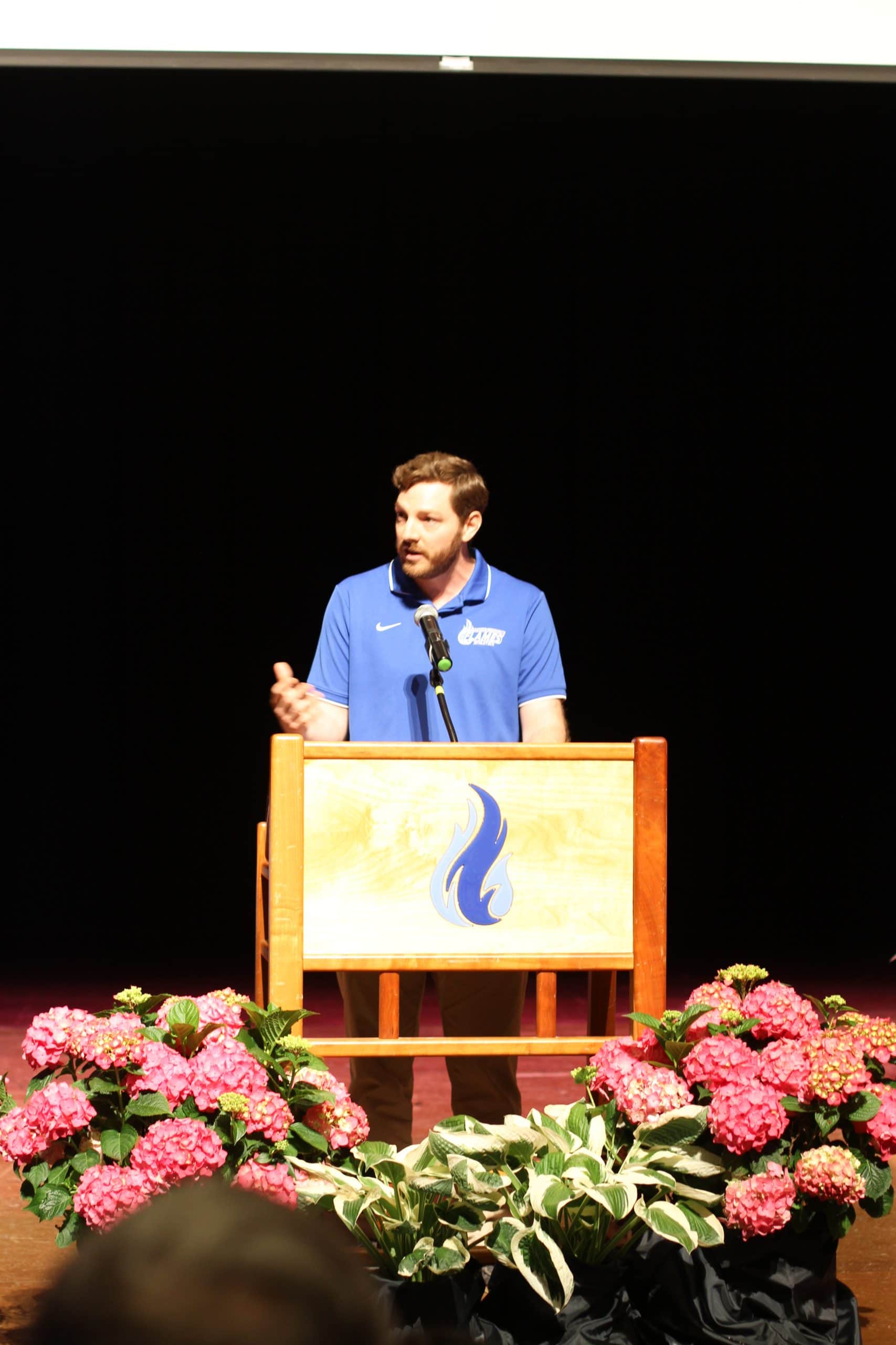 Mr. King, High School principal, welcomed the rising freshman class with witty advice from the graduating senior class: Stay active in the school community, balance your responsibilities, and remember to enjoy your classes. Teachers are here to help, so don’t hesitate to reach out. Stay positive and make friends; you’re only a 9th grader once.
