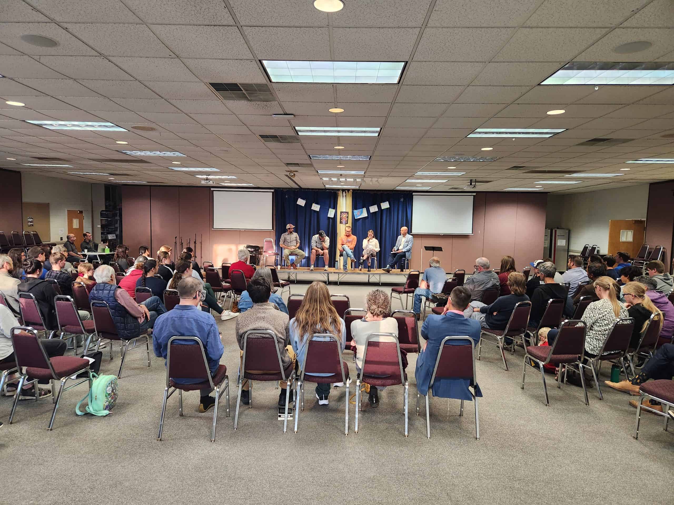 Ami joined about 85 youth and adults in the Eastern Mennonite School (EMS) dining hall as one of the panelists. He shared why he made the drive from his home in DC for this event. “I’m Jewish. Tonight is the night of Passover, which is the most holy day in Judaism. I decided to be here tonight instead of with my family because I feel like people should [gain] understanding about peace from many different sides.”
