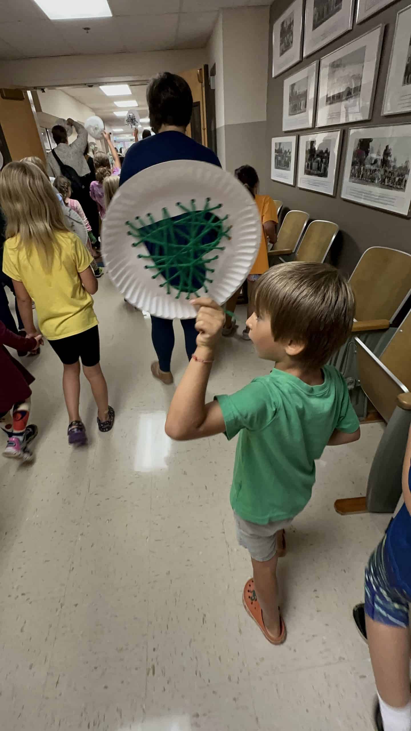 Due to the rain, the students walked through the upper school building flying our peace dove and singing “Siyahamba: We are Marching in the Light of God,” a South African hymn. While they marched the students carried a handmade heart. These hearts symbolize peace and sweetness, reminding us that we can welcome sweet moments even from those we don’t know well. The fourth-grade Peacebuilding class even composed a poem describing simple moments across the globe: