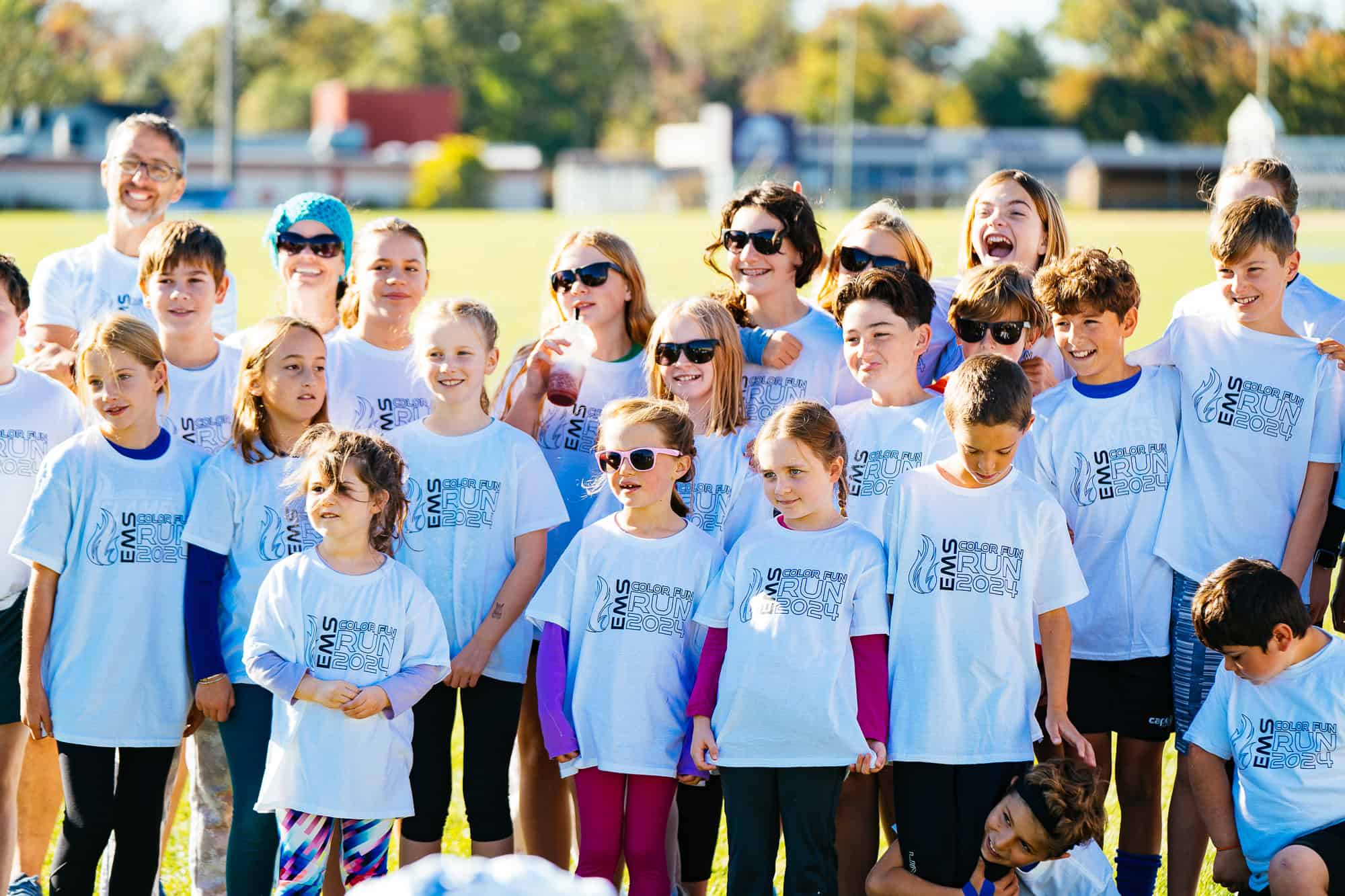 The celebration showcased our K-12 community spirit that brought students across the divisions together. Older students assisted with color distribution, while two of our cross-country athletes led stretching exercises for participants before the fun run for many of our EMES and EMMS students and their family members!