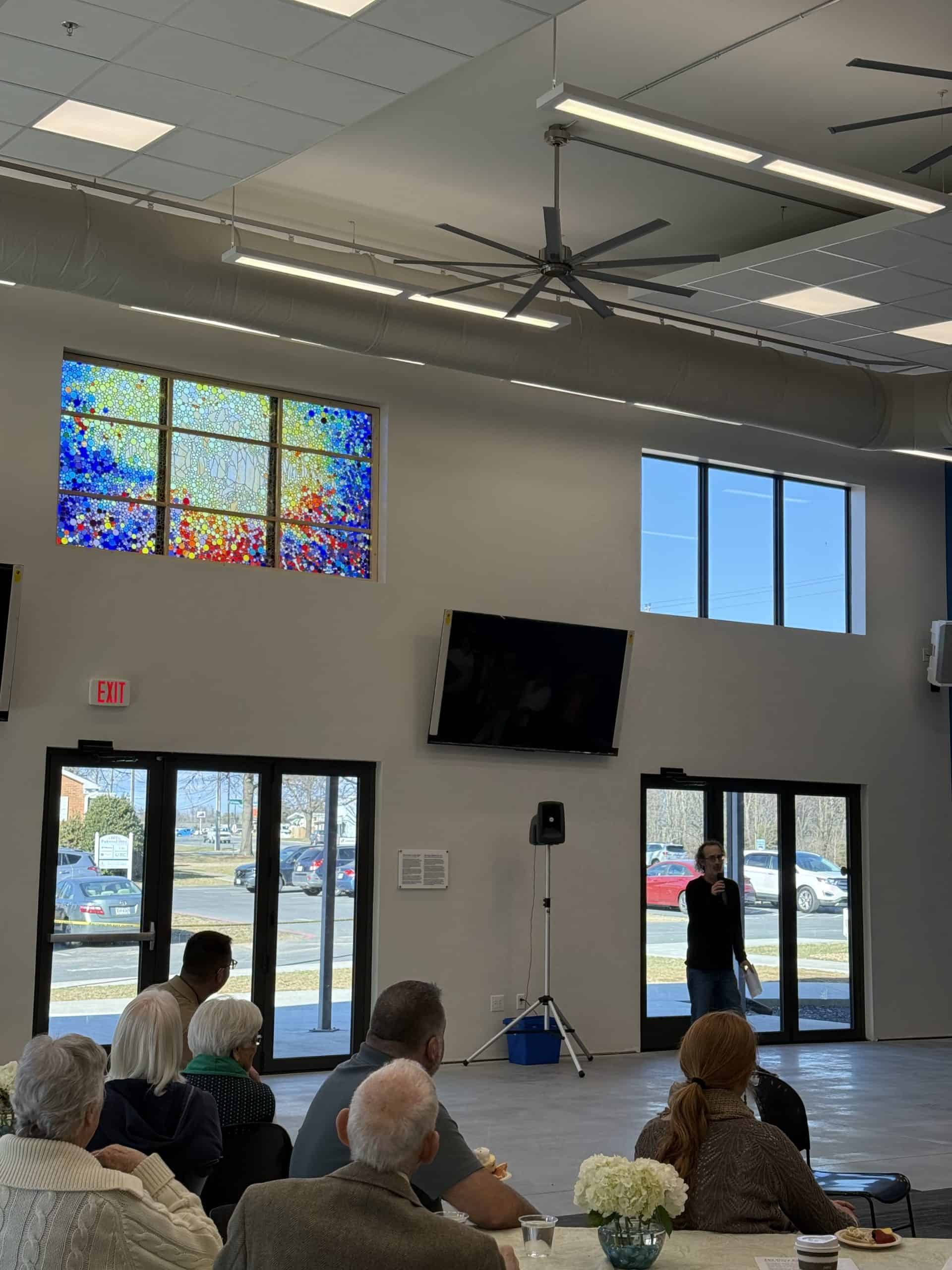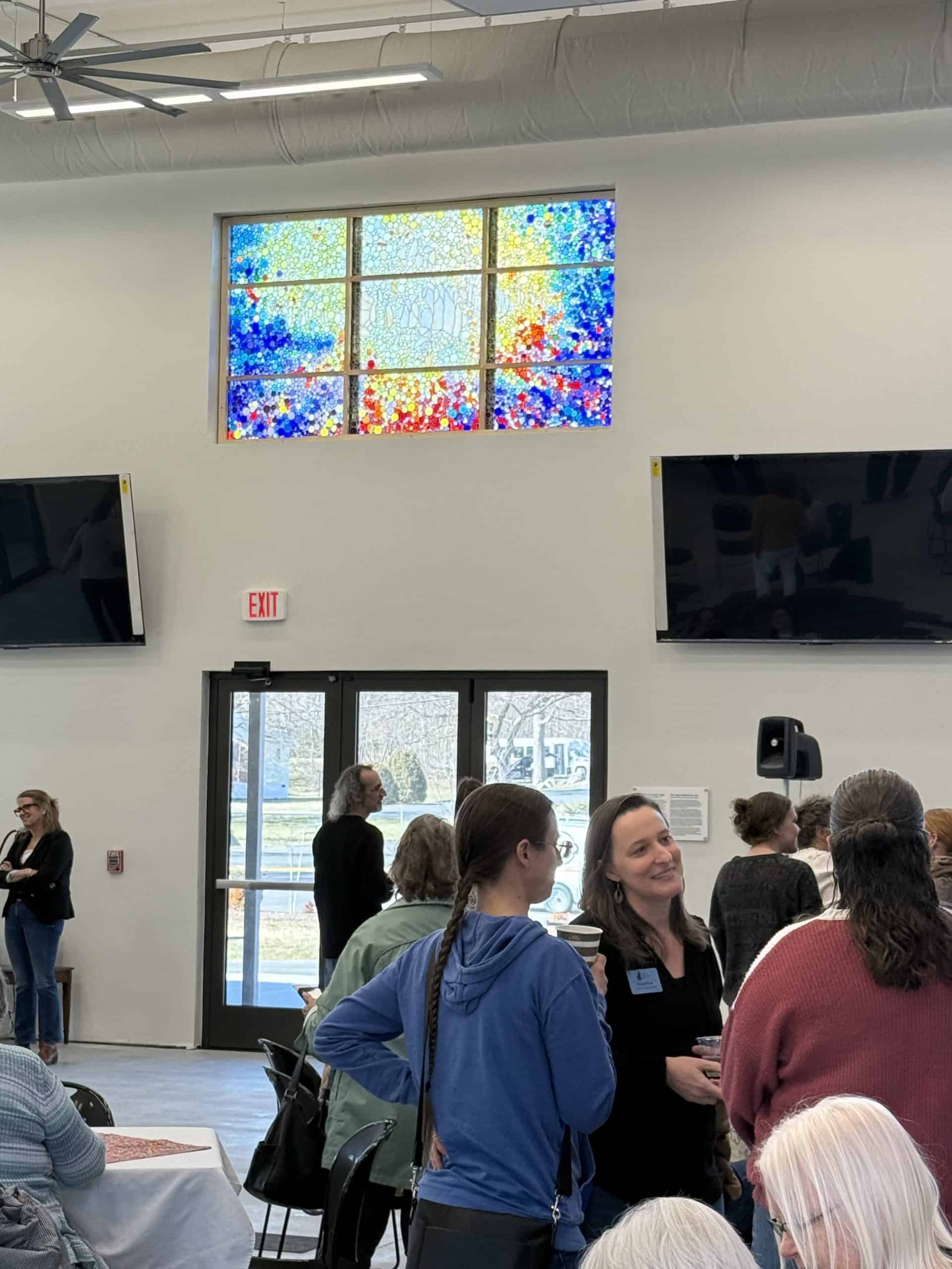 On March 8, we hosted a Stained Glass Art Preview, featuring artist Zac Nafziger ‘94, who shared his creative process with principal Maria Archer and founding teacher Lynette Mast. His artwork, “The Forest’s Leafy Light,” was inspired by the late Christopher R. Mast and his passion for EMES. Read more about the piece here.