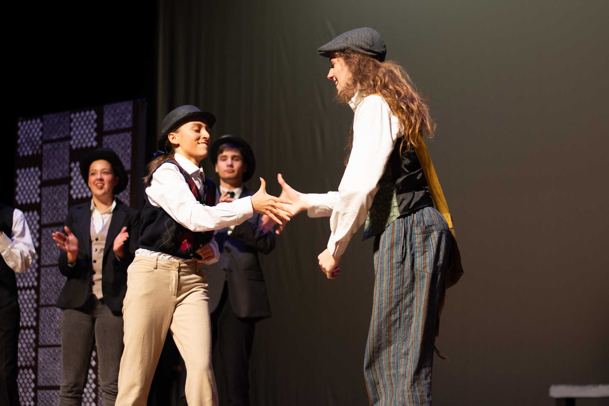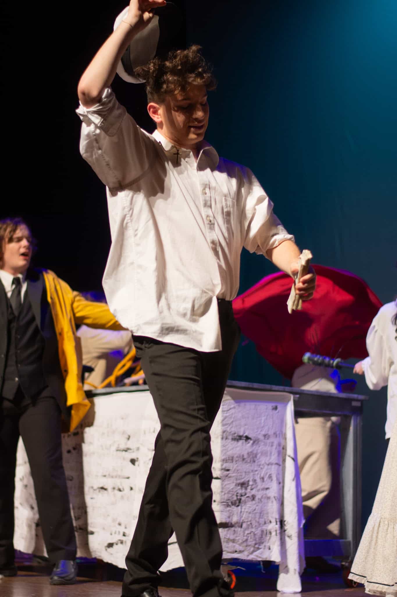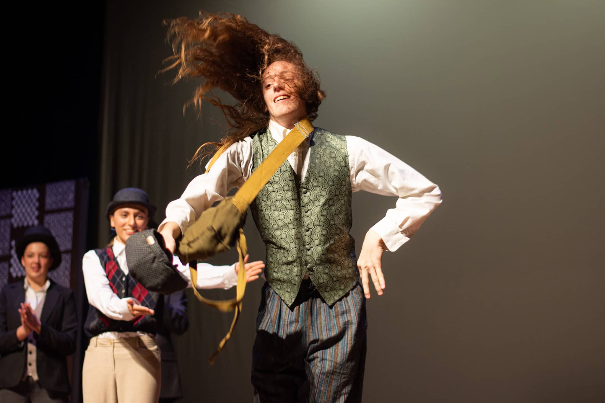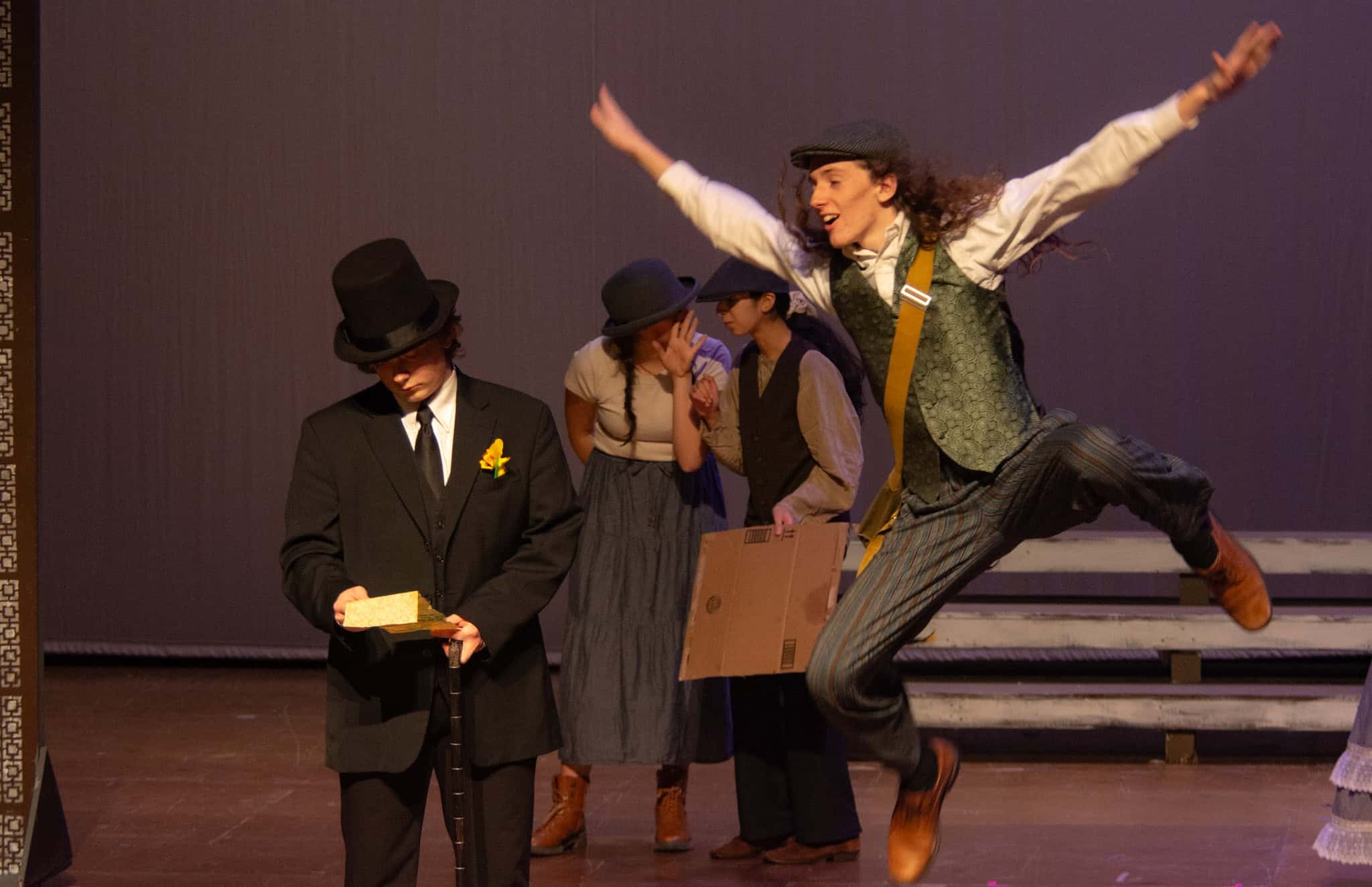 The plot follows Phileas Fogg ( Jackson Comfort ’26) on his whirlwind journey around the globe, utilizing various modes of transport—by train, elephant, and ship. A standout moment in the production was the students’ portrayal of being aboard a ship, rhythmically swaying in perfect harmony as they mimicked the ocean’s waves, accompanied by a lively sea tune played also by our students. The production also featured impressive sound and lighting effects, skillfully managed by Samuel Aponte ’28, enhancing the overall experience.