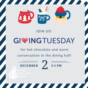Dec 3 UPDATE: Thank you to everyone who made Giving Tuesday 2025 a success at Eastern Mennonite School! We exceeded 2024 fundraising of $16,491.50. This year, 35 supporters gave $17,307! These gifts kick off Christmas Fund Drive and encourage students as they begin writing cards and inviting support. That’s 11.5% of our Fund Drive goal! Thank you!