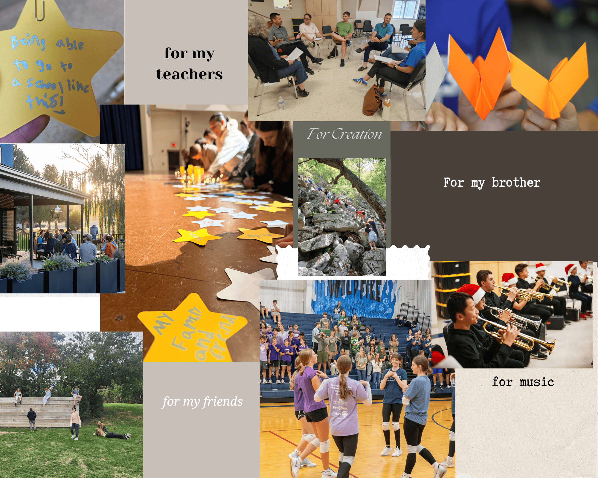 As we approach the season of Thanksgiving, we find ourselves reflecting on the many blessings and wonderful experiences that have enriched our school community this fall, including our fall play, academic achievements, recent e-term, athletic events, and all the ways we see you showing up, reflecting Christ’s light and leading in our community. It is during this time that we are reminded of the importance of taking a moment to pause, reflect, and give thanks for all that we have.
