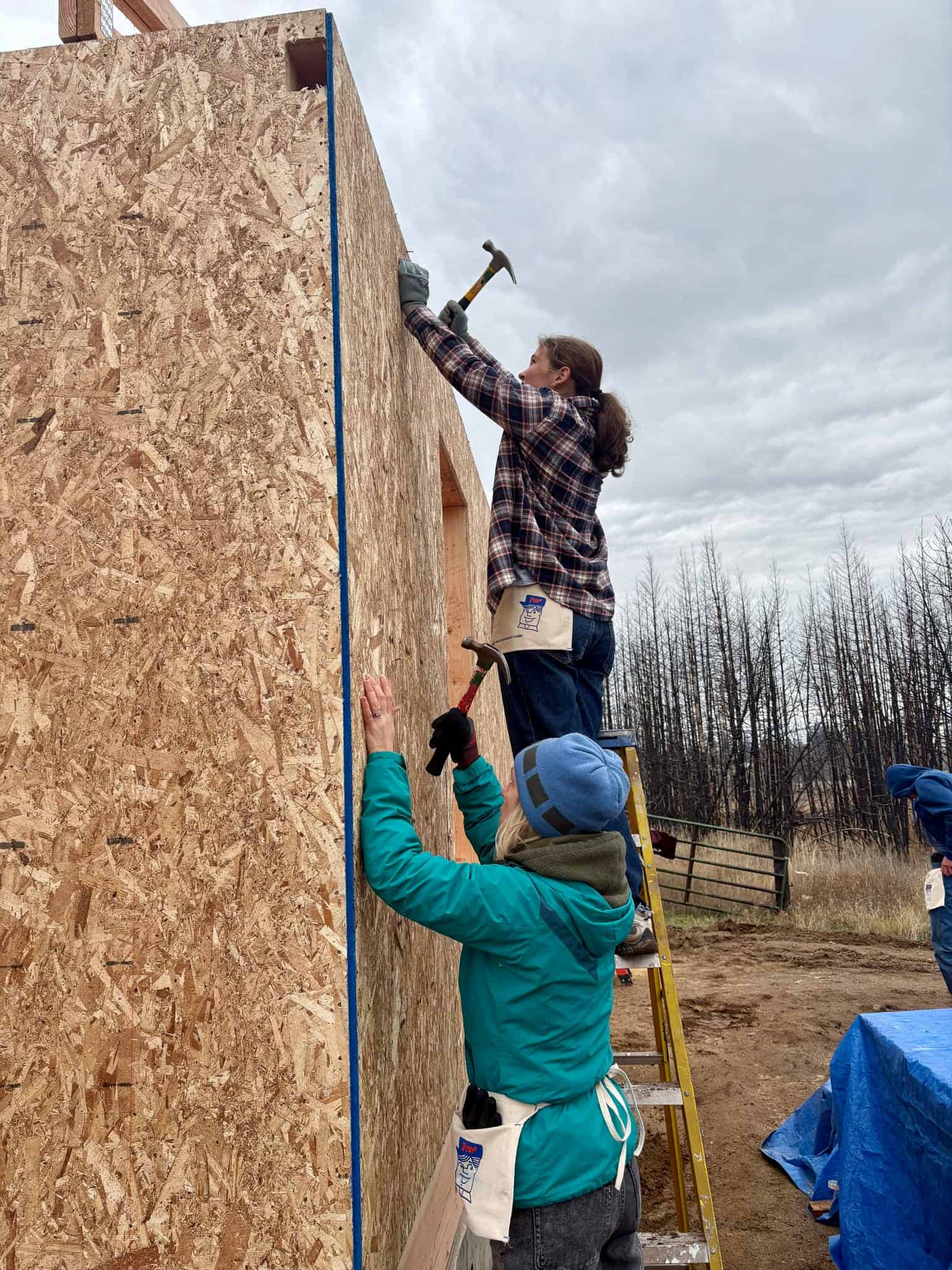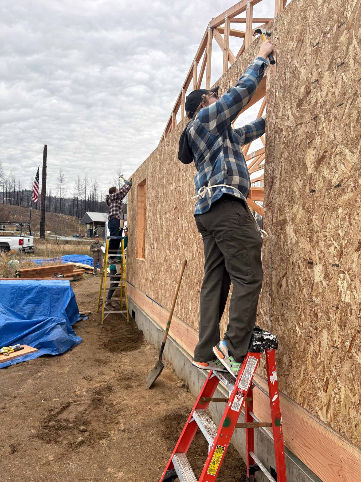 Under the guidance of exceptional MDS leaders, including project manager Vern, who meticulously procured all necessary materials, the students worked collaboratively with their crews. The daily routine began at 6 a.m. with breakfast, followed by packing lunches for the worksite. After a devotional led by EMS students, the team began the 45-minute drive to the worksite, arriving around 8:30 a.m. Where they worked on rebuilding homes and alongside skilled MDS professionals. The students’ primary task was to assist in rebuilding homes destroyed by the wildfires. Their work involved installing house wrap and foam boards, and at one site, they even tackled roofing. The presence of a timber wolf on a leash at one of the house sites added an unexpected element to their experience.The day concluded with a return to camp around 4 p.m., where they enjoyed a delicious dinner, shared job reports, and engaged in various games.