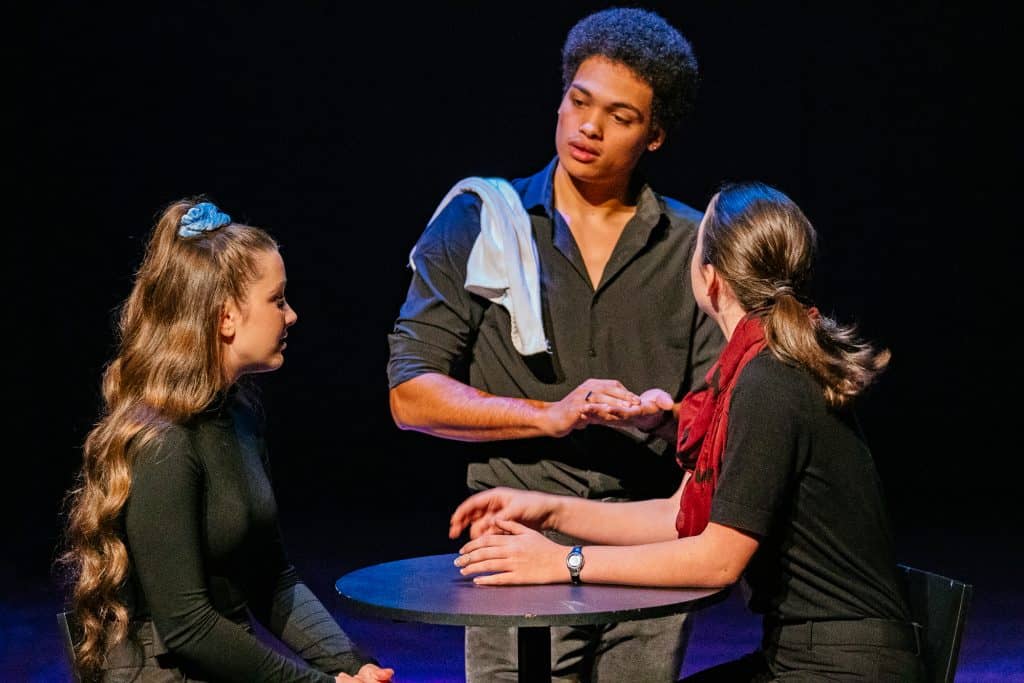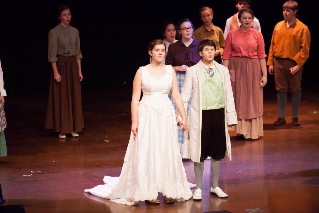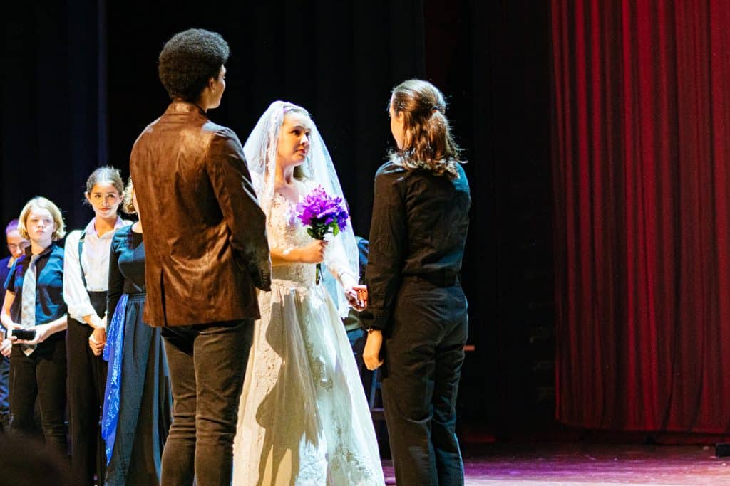 Theater helps us to examine the full human experience. Sometimes that means we portray situations that are different from the wholeness God desires for us. We consider student developmental readiness to engage with material, and use the opportunity for conversation that draws us closer to God and each other.