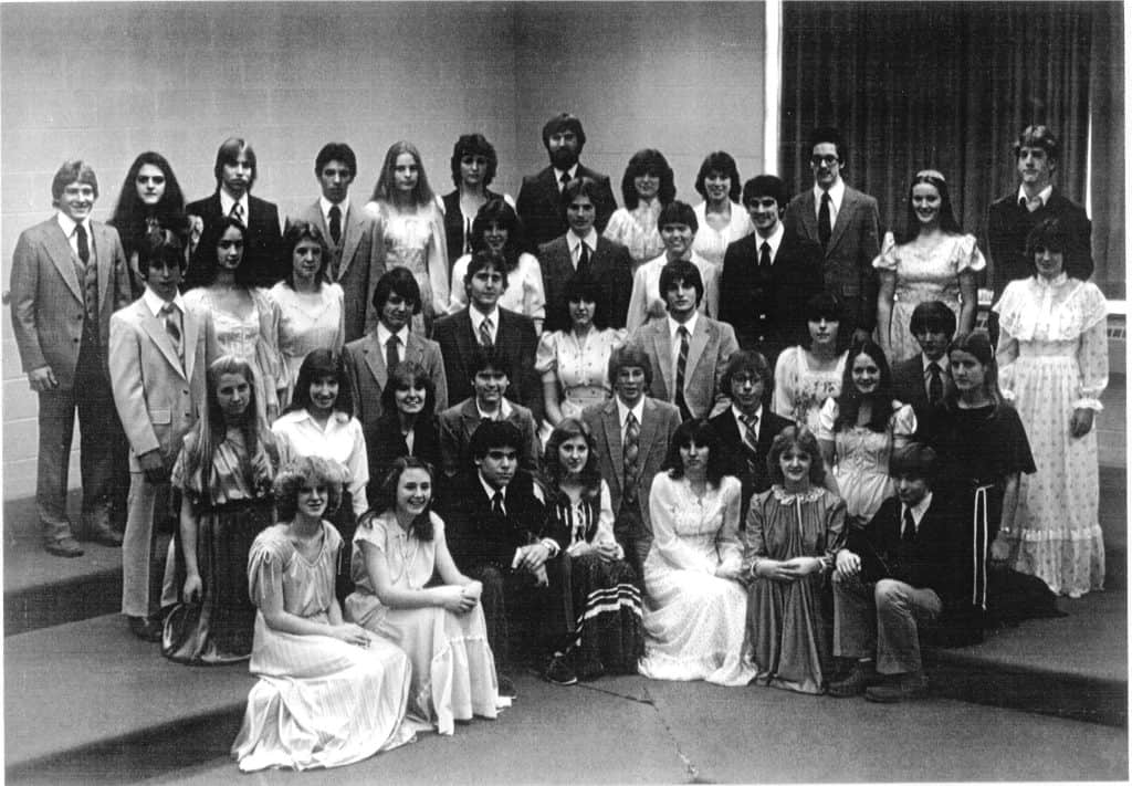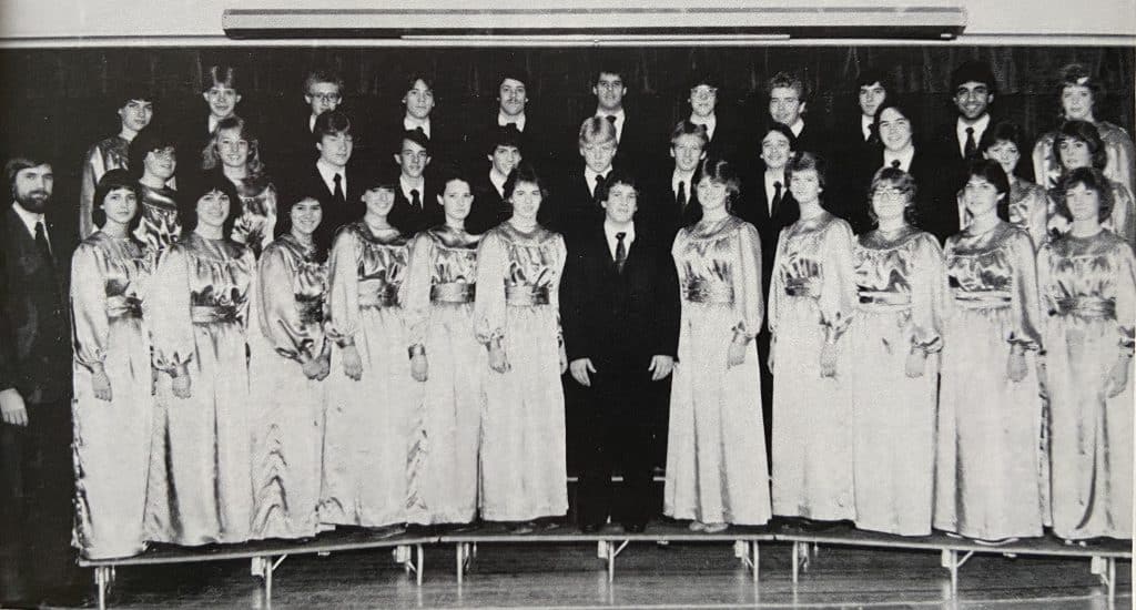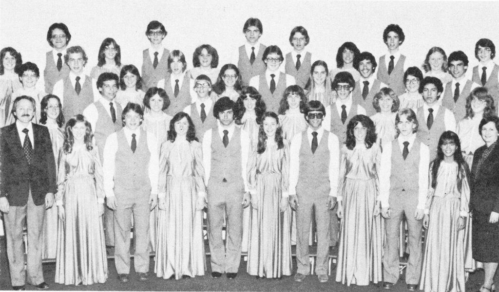 This exhibit provides context for the 1981-present photo display in the arts hallway in the upper building at EMS. Those group photos hung in the choral room until summer 2019 when they were removed for the school’s 2,000+ choral music library. After extensive photo recovery efforts, researching names, and consultation with At Ease Design, the exhibit was installed in 2023.