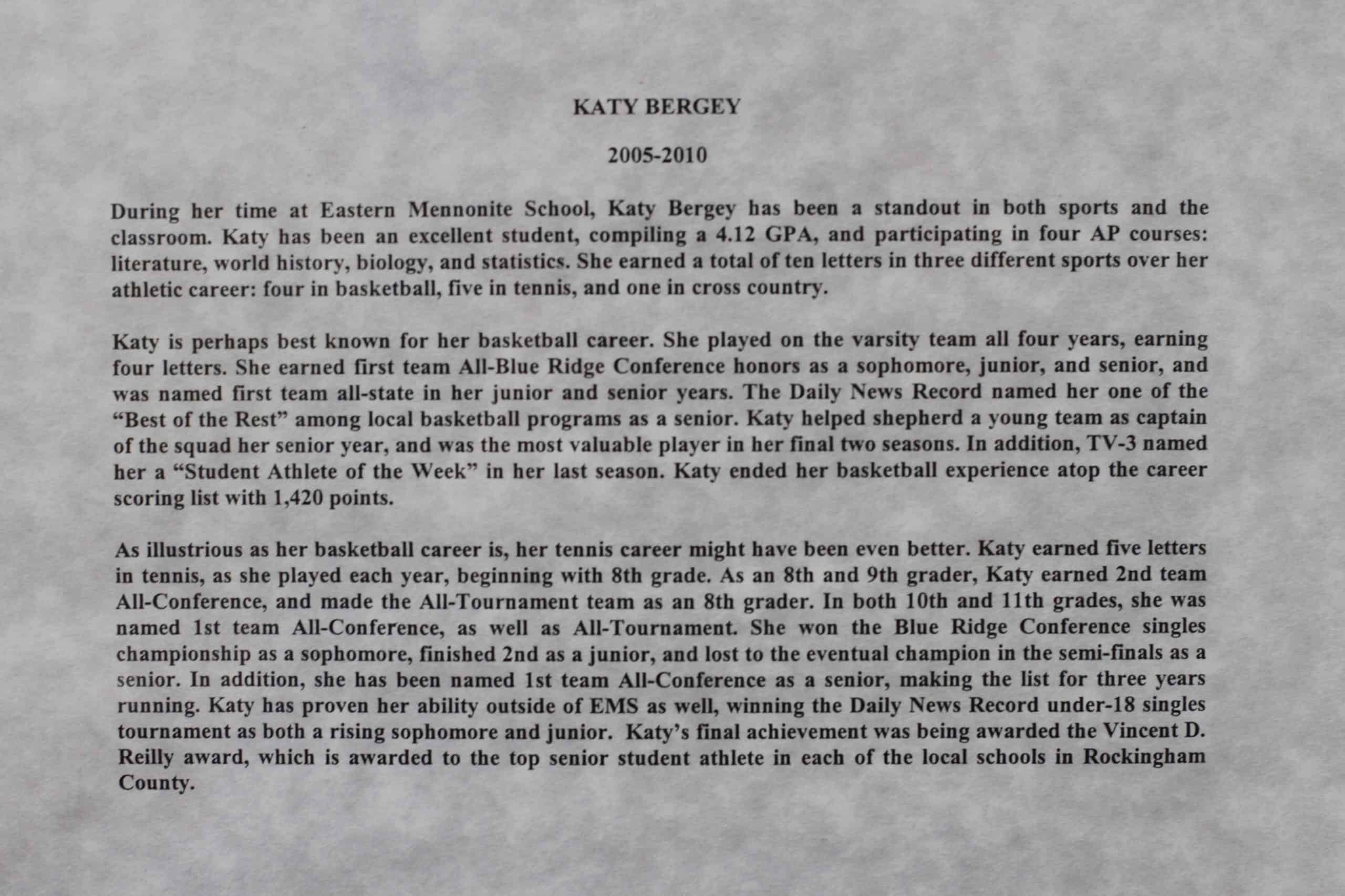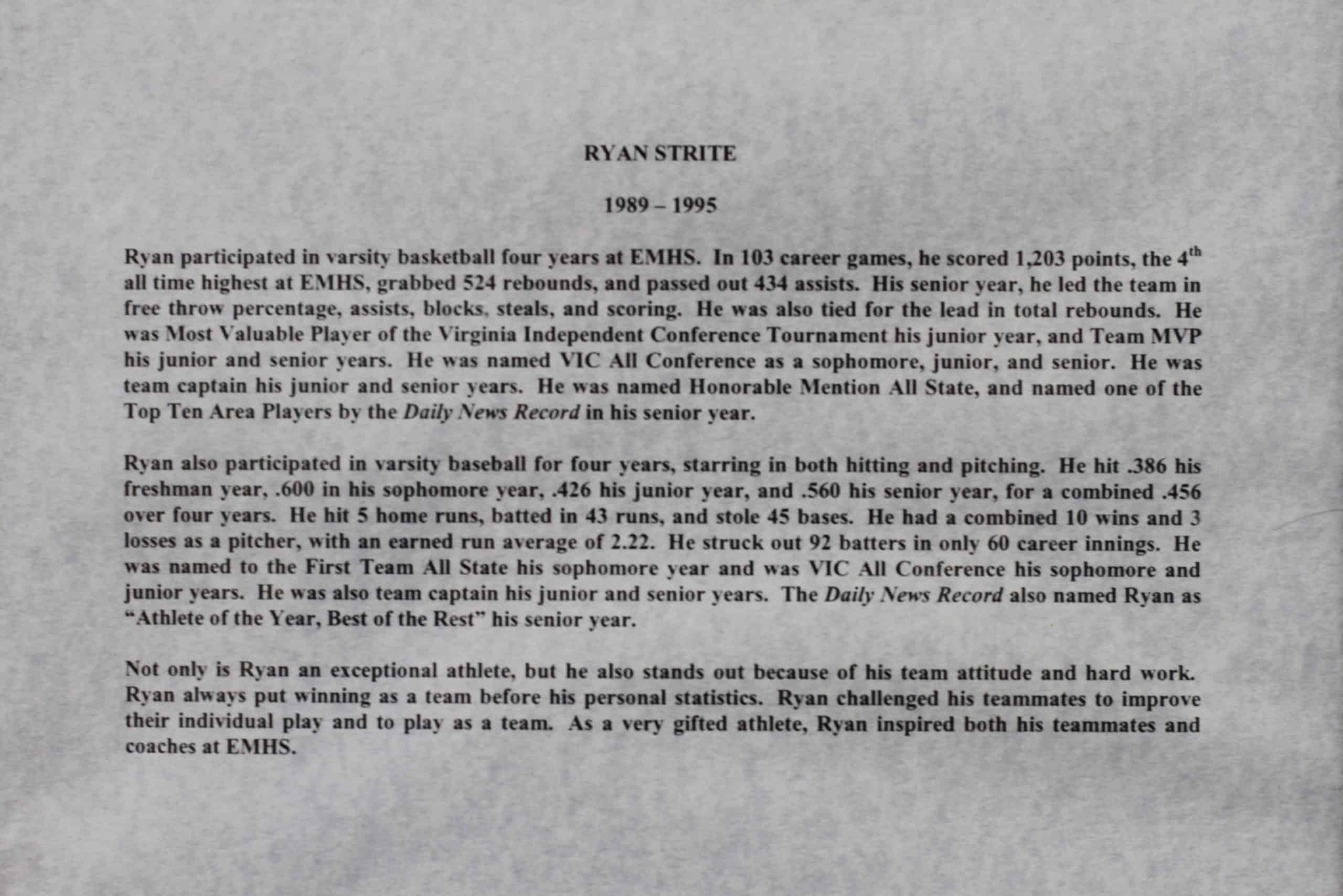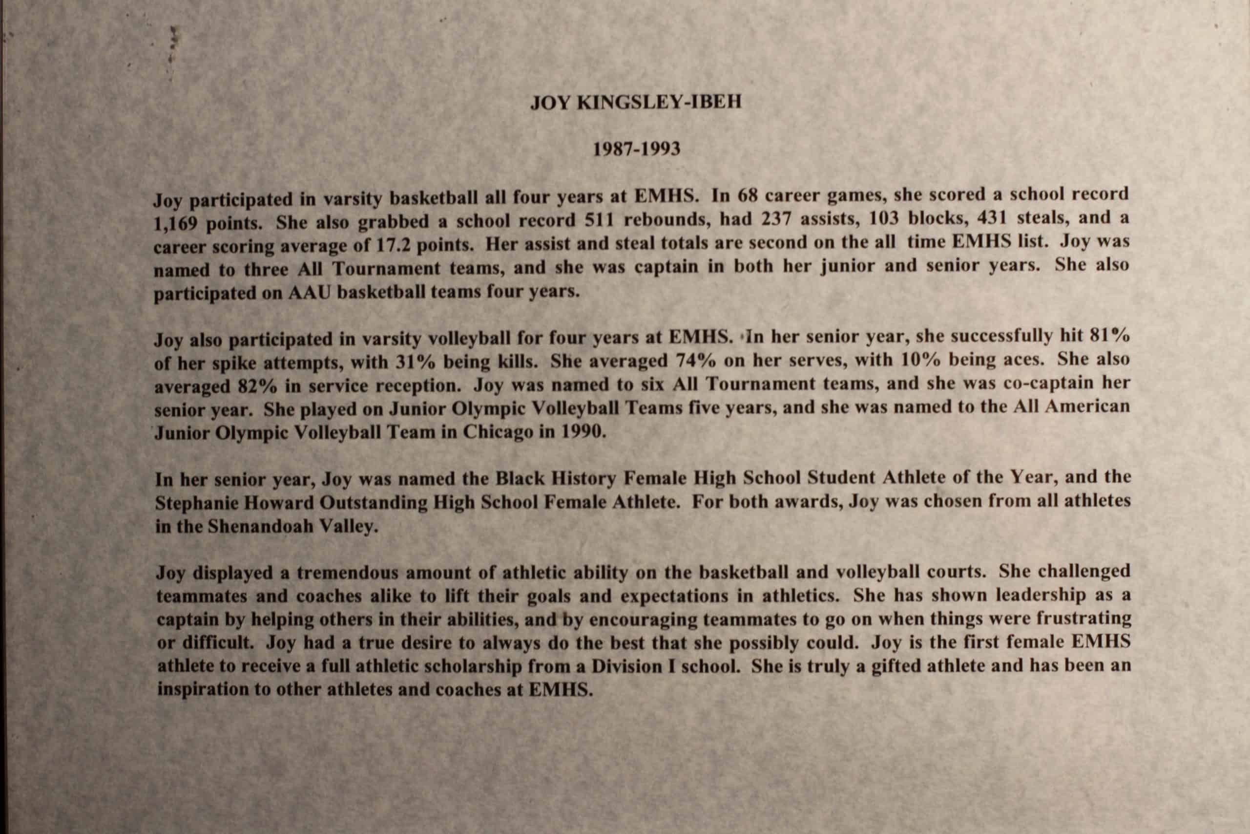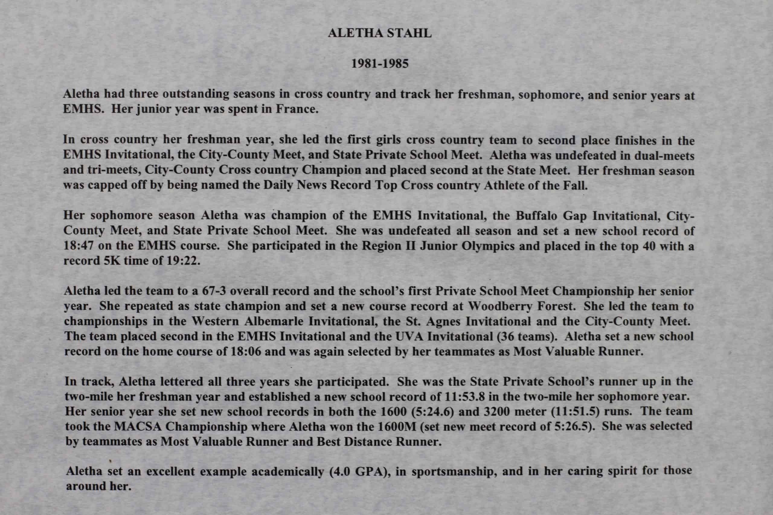 In the mid 1970s, EMS began to recognize outstanding EMHS student-athletes for their athletic and academic accomplishments by adding them to the the Athletic Hall of Honor, located outside the entrance to the gym from the school building.