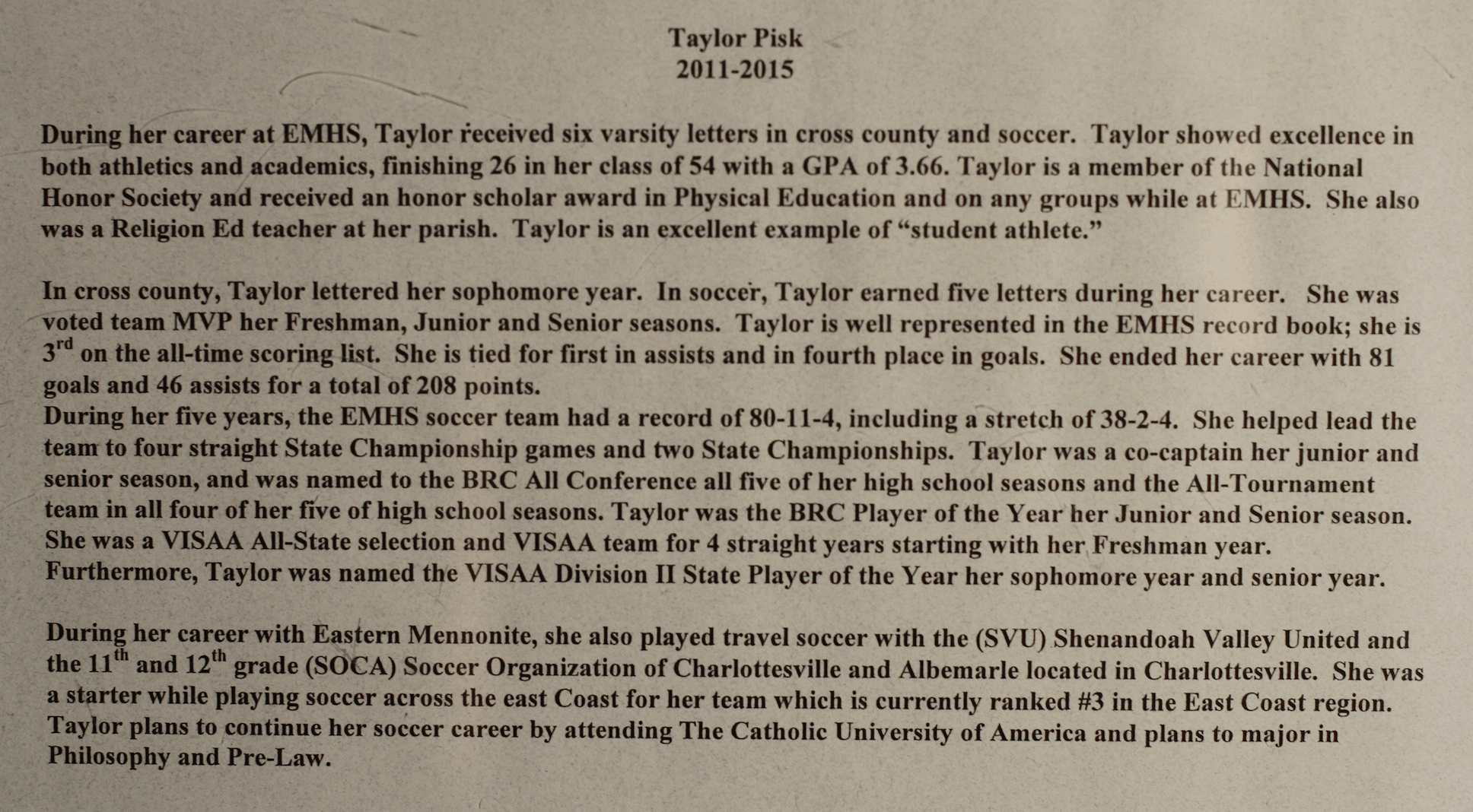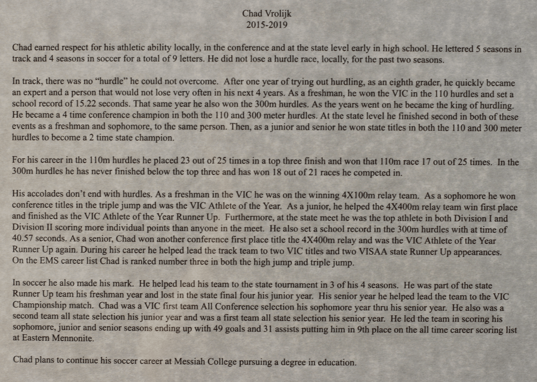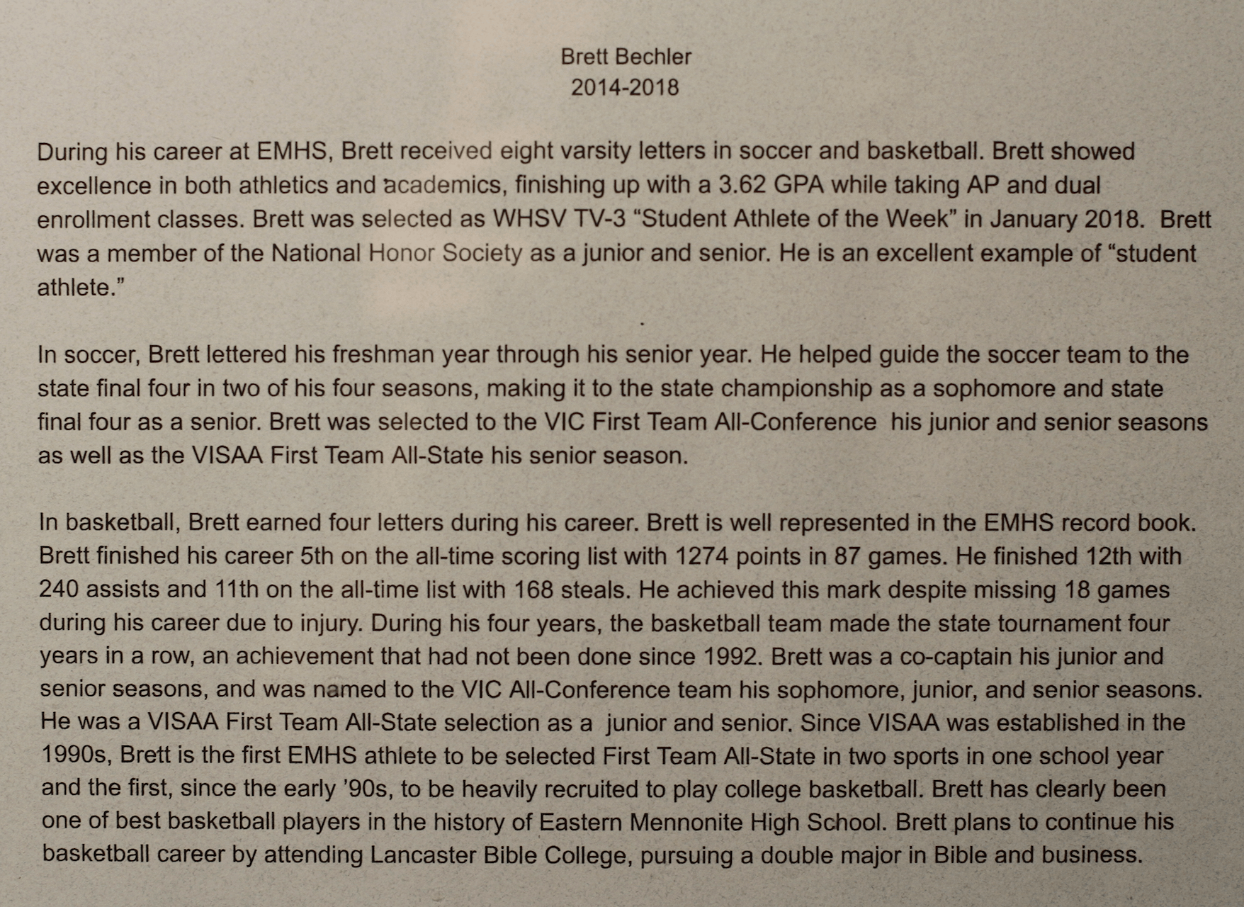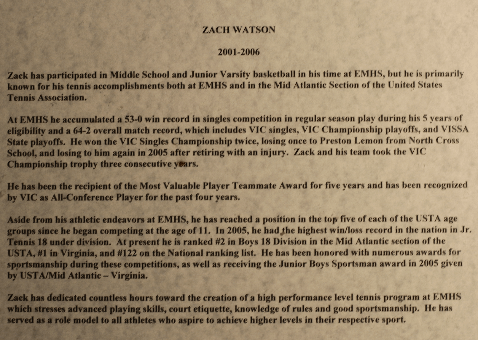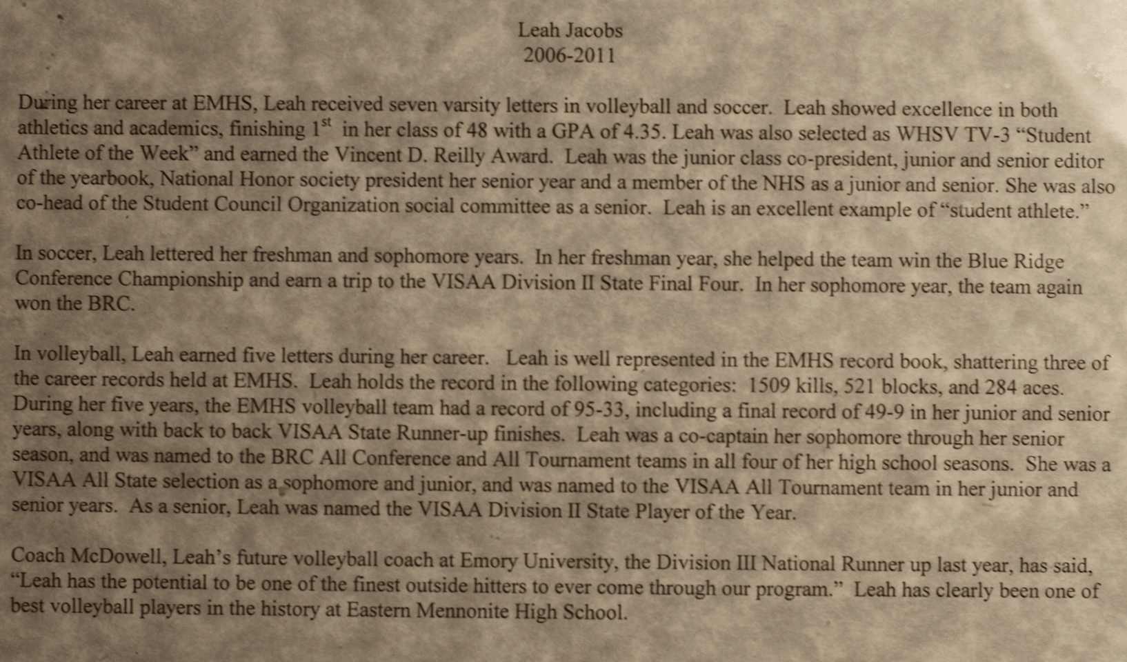 In the mid 1970s, EMS began to recognize outstanding EMHS student-athletes for their athletic and academic accomplishments by adding them to the the Athletic Hall of Honor, located outside the entrance to the gym from the school building.