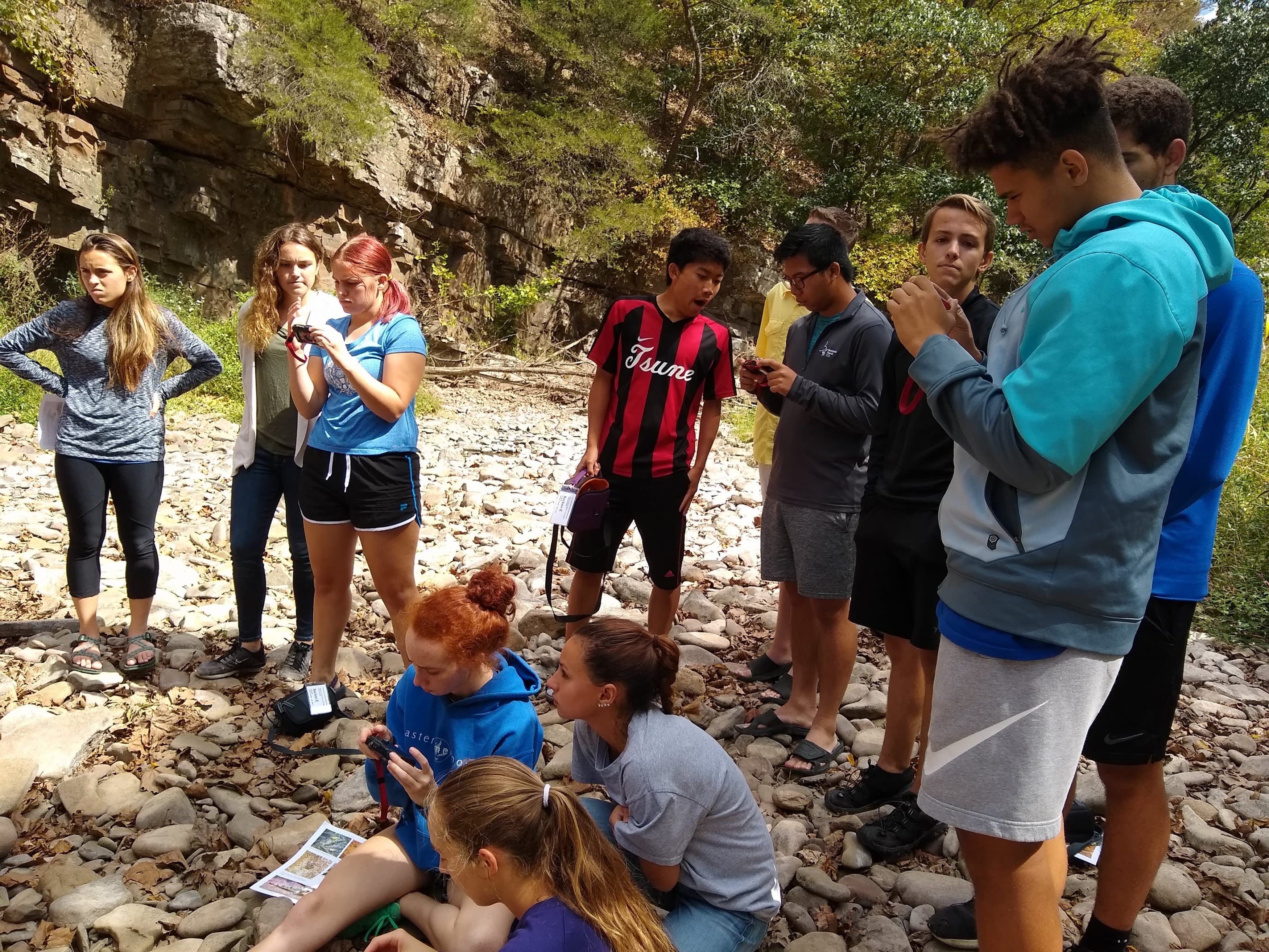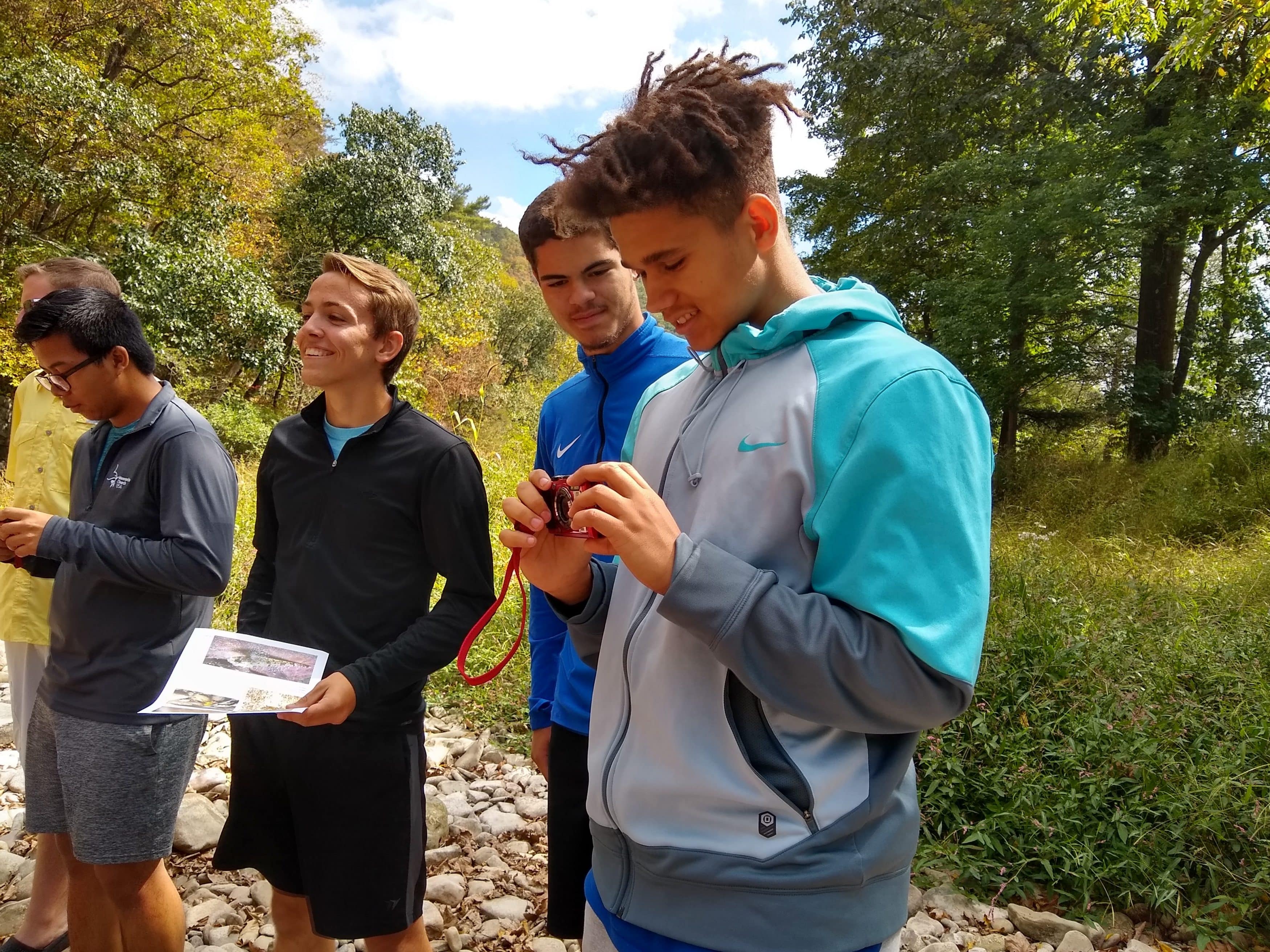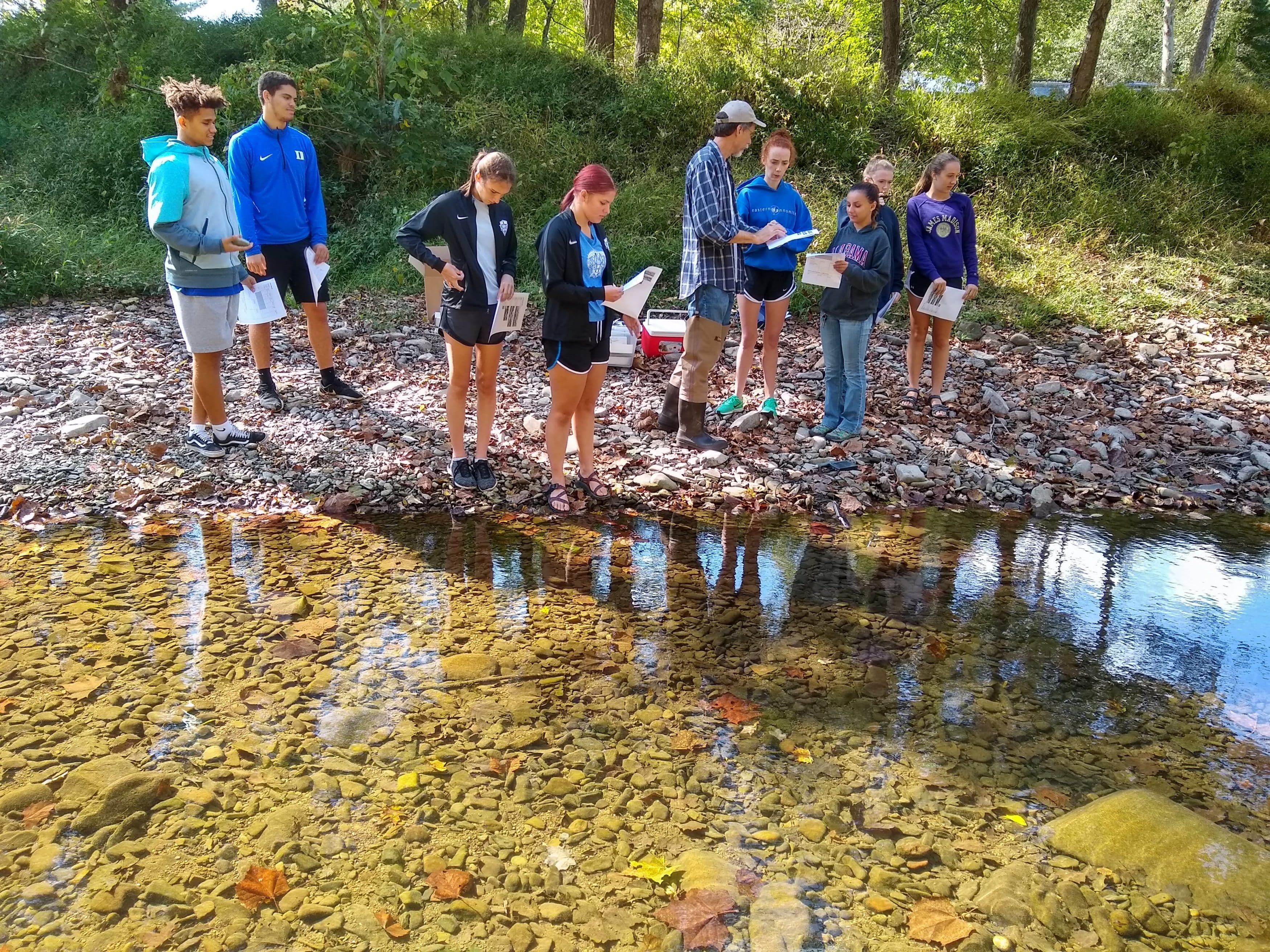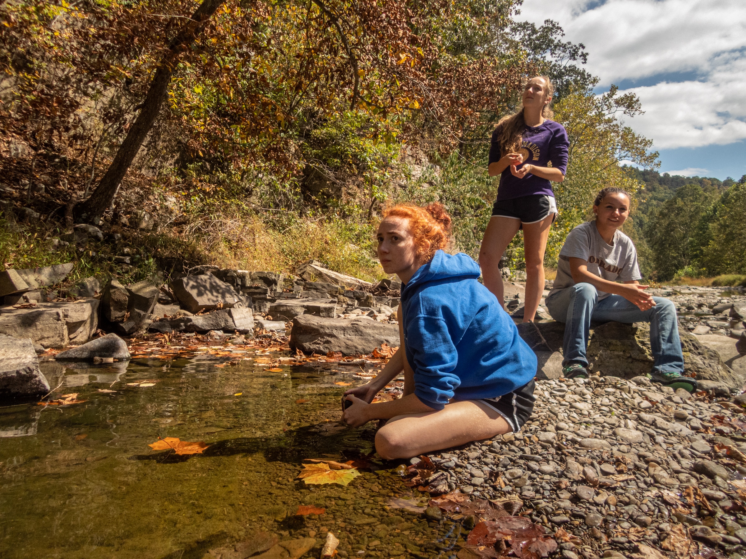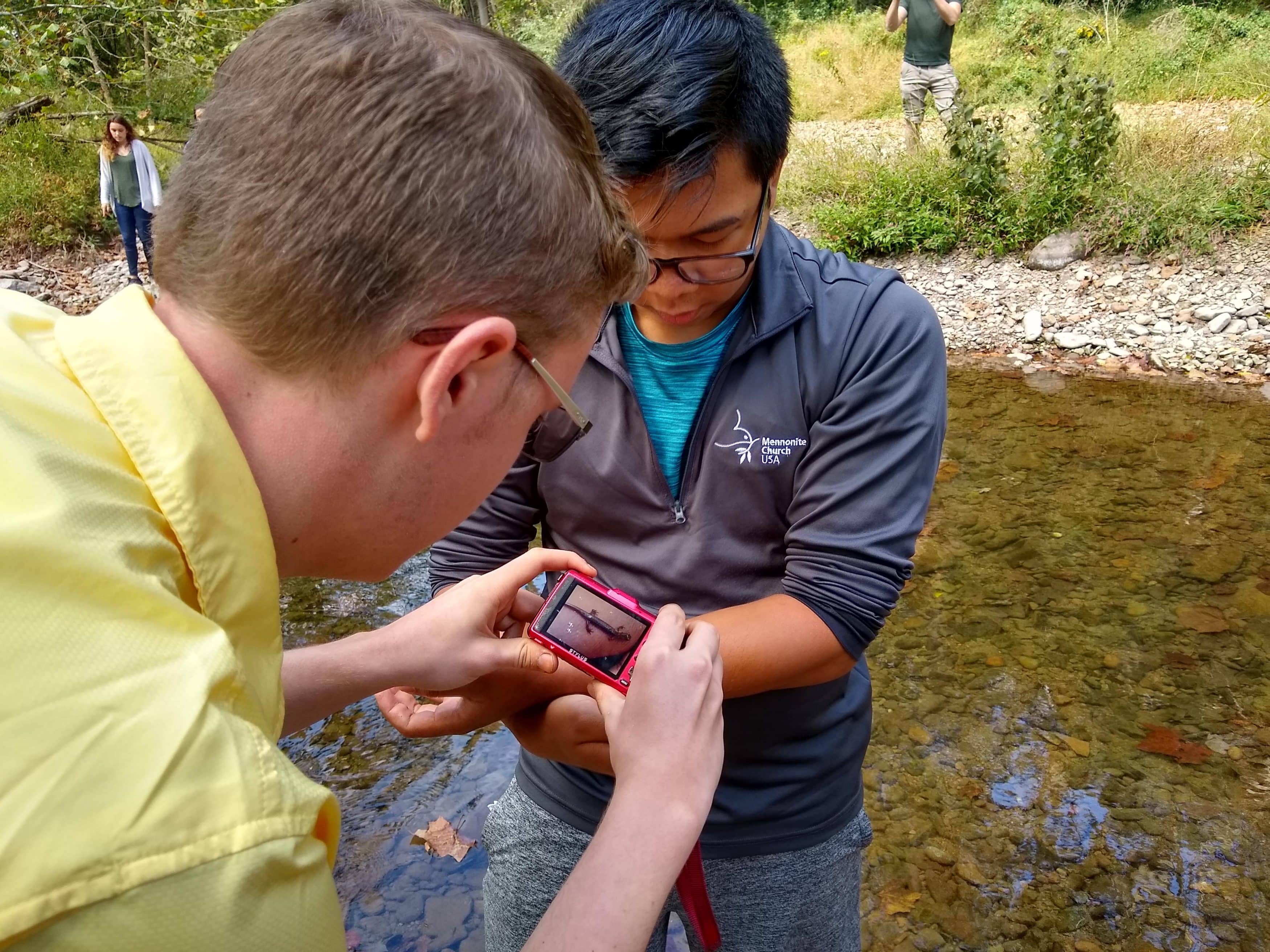 Eastern Mennonite High School students in environmental science and chemistry classes spent a recent afternoon along the North Fork of the Shenandoah River in Bergton, Virginia, doing chemical analysis and studying macroinvertebrates, organisms that lack a spine and are large enough to be seen with the naked eye. They also were introduced to underwater photography.