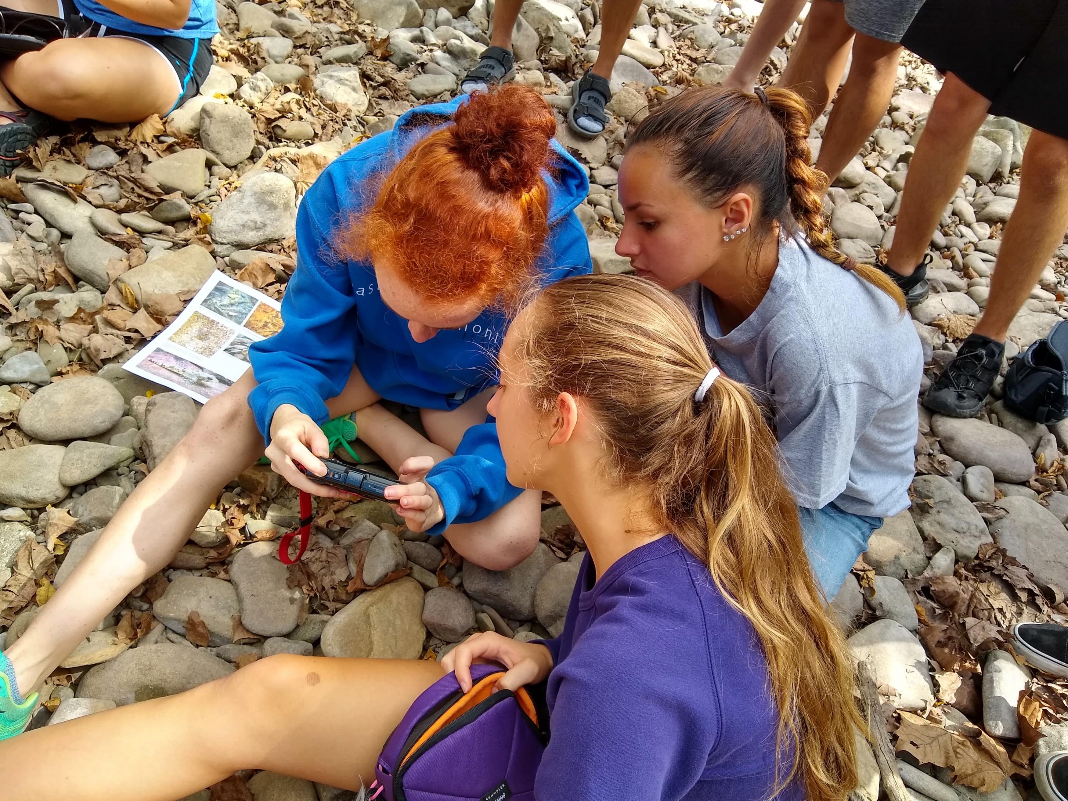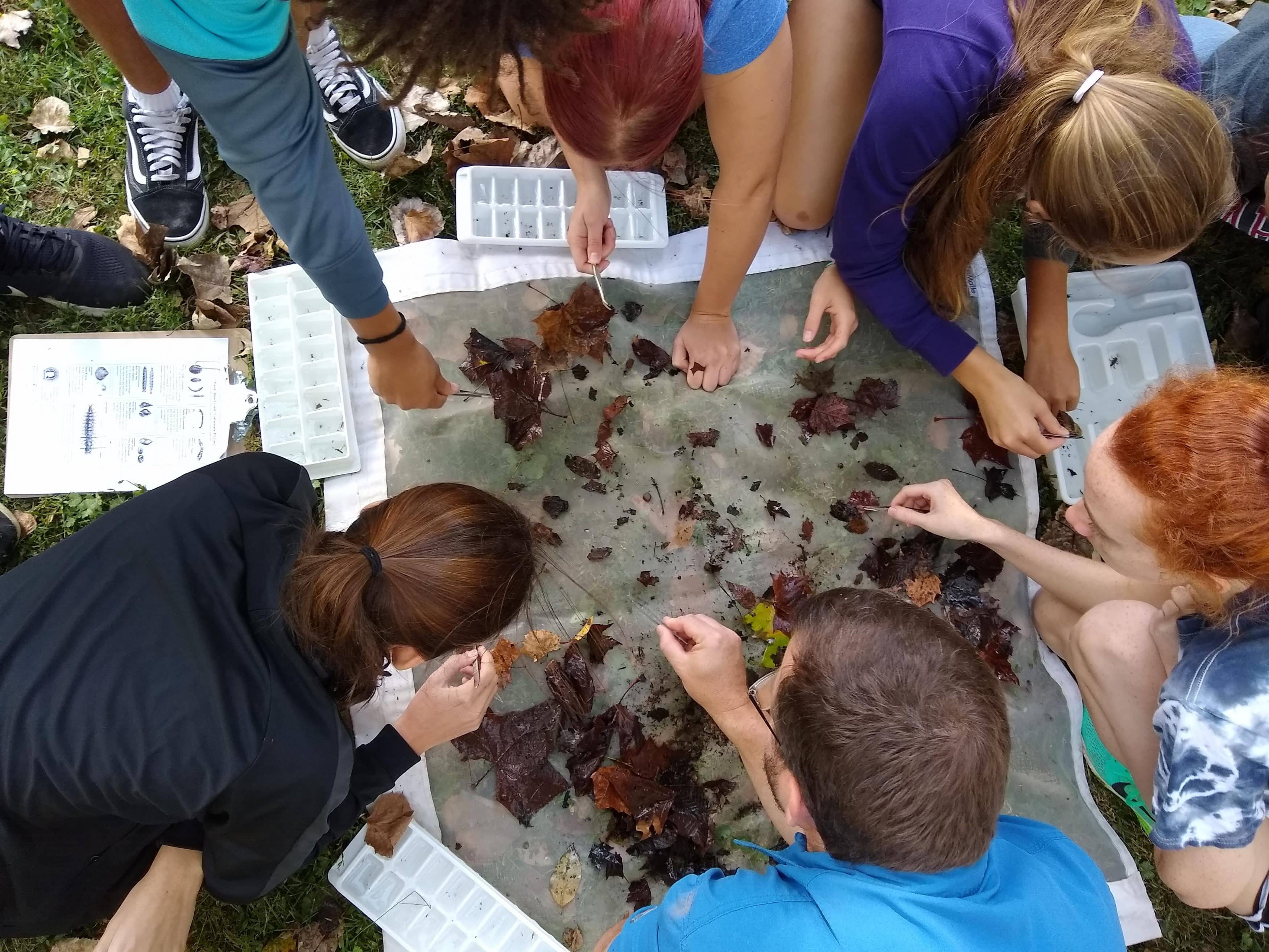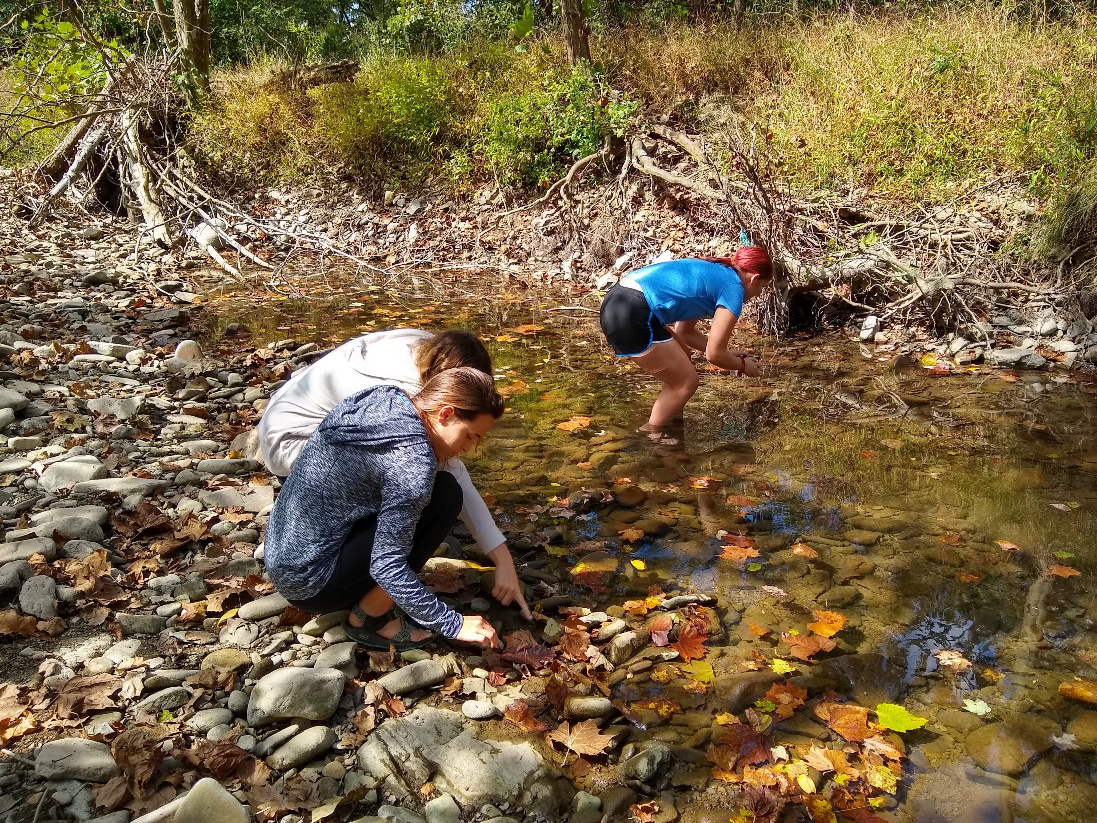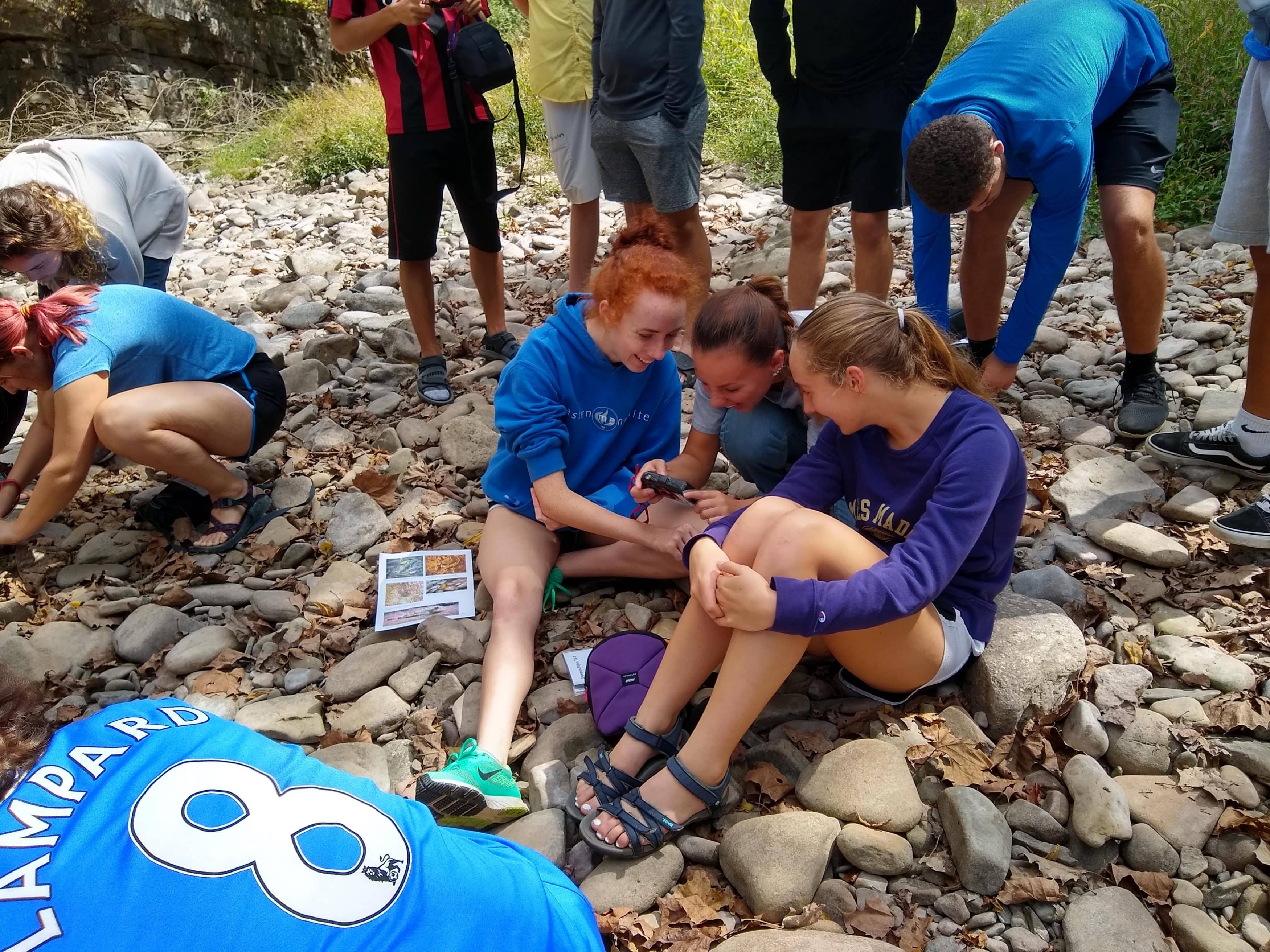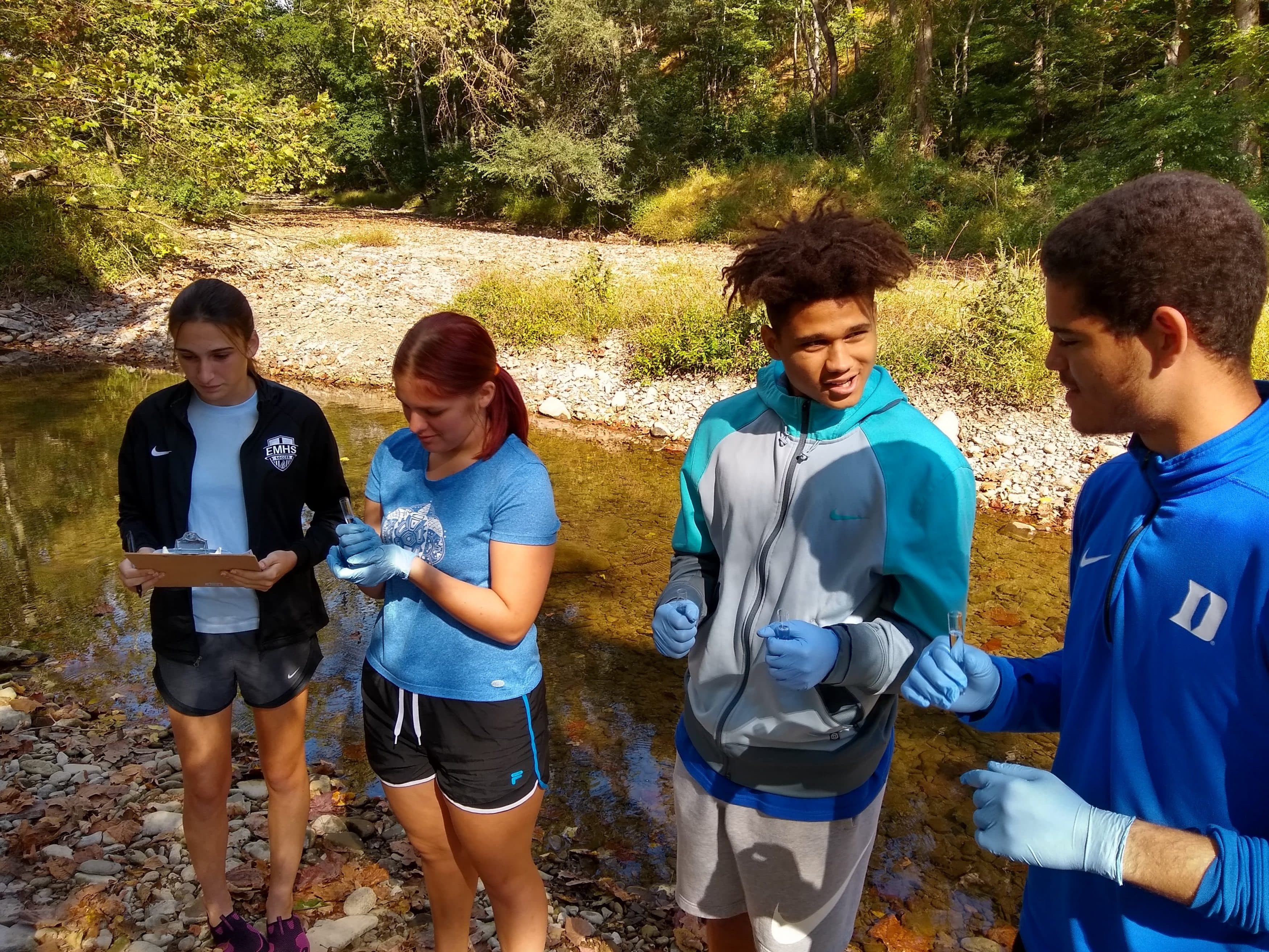 Eastern Mennonite High School students in environmental science and chemistry classes spent a recent afternoon along the North Fork of the Shenandoah River in Bergton, Virginia, doing chemical analysis and studying macroinvertebrates, organisms that lack a spine and are large enough to be seen with the naked eye. They also were introduced to underwater photography.
