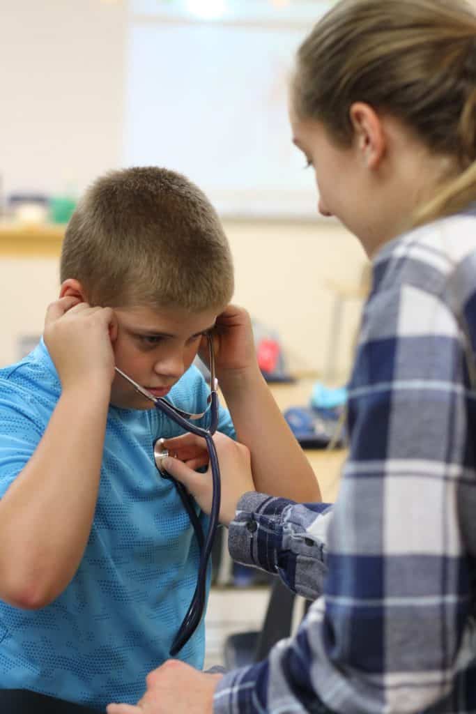 Fifth grade students recently learned about their own hearts and the human circulatory system during a “clinic hour” hosted by high school anatomy and physiology students. The A&P students had created a heart model earlier in class to demonstrate how the heart regulates the blood flow and circulation through the human body, explains teacher Claudia…