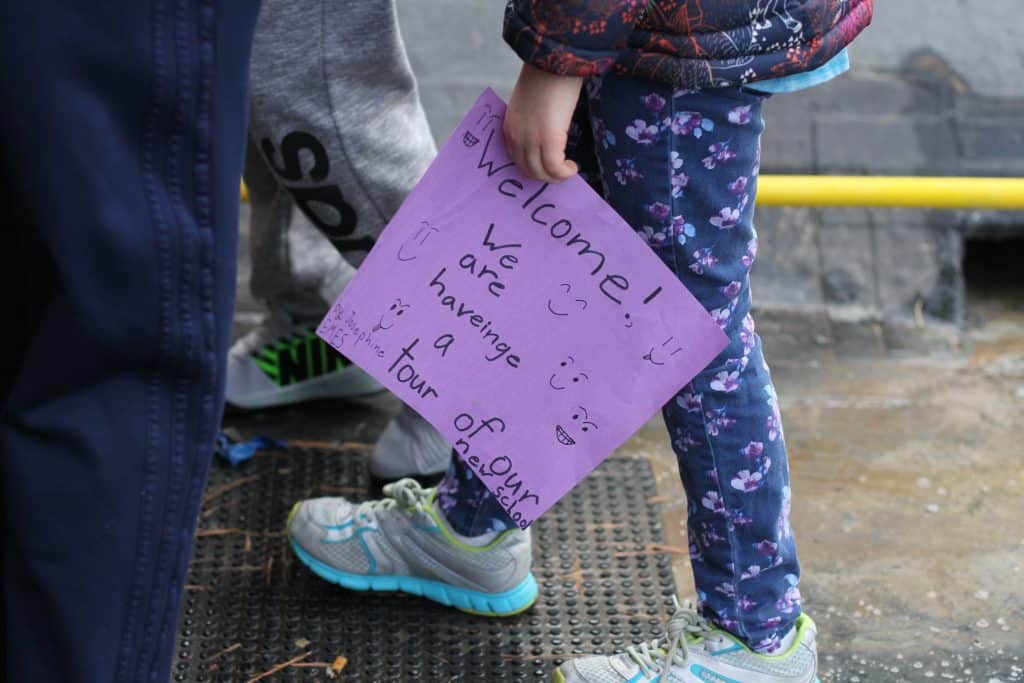 Workers poured footers last week to begin building the bridge that will soon connect the original 1964 “upper” building at Eastern Mennonite School with the newly renovated “lower” building, at 801 Parkwood Drive in Harrisonburg. Meanwhile, eager elementary students got their first peek at their new classrooms. The bridge base will be complete in time…