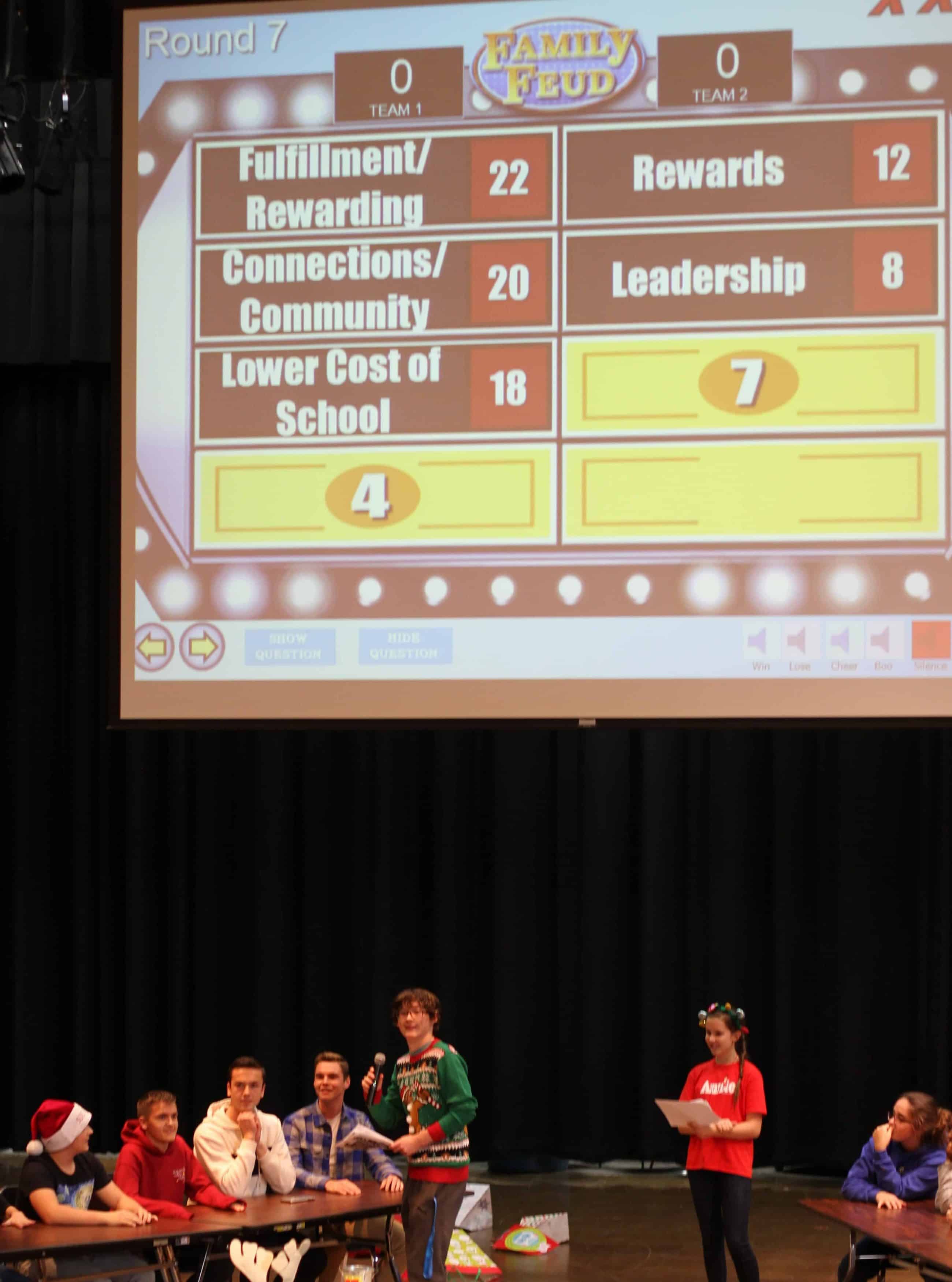 Student leaders launched the drive Nov. 26 with Family Feud featuring questions on fund drive themes. Students are learning leadership skills and growing in their understanding of philanthropy and generosity through this effort.