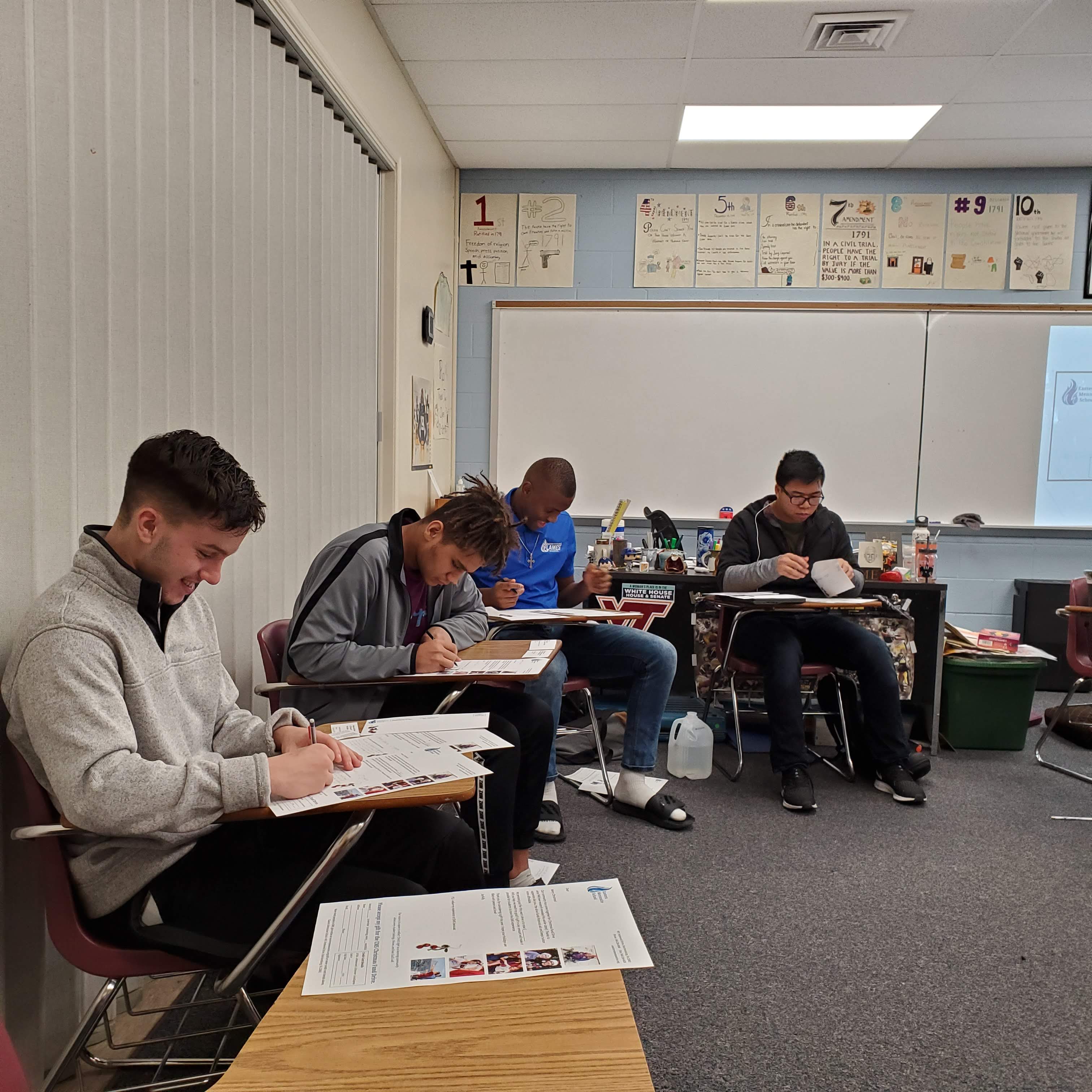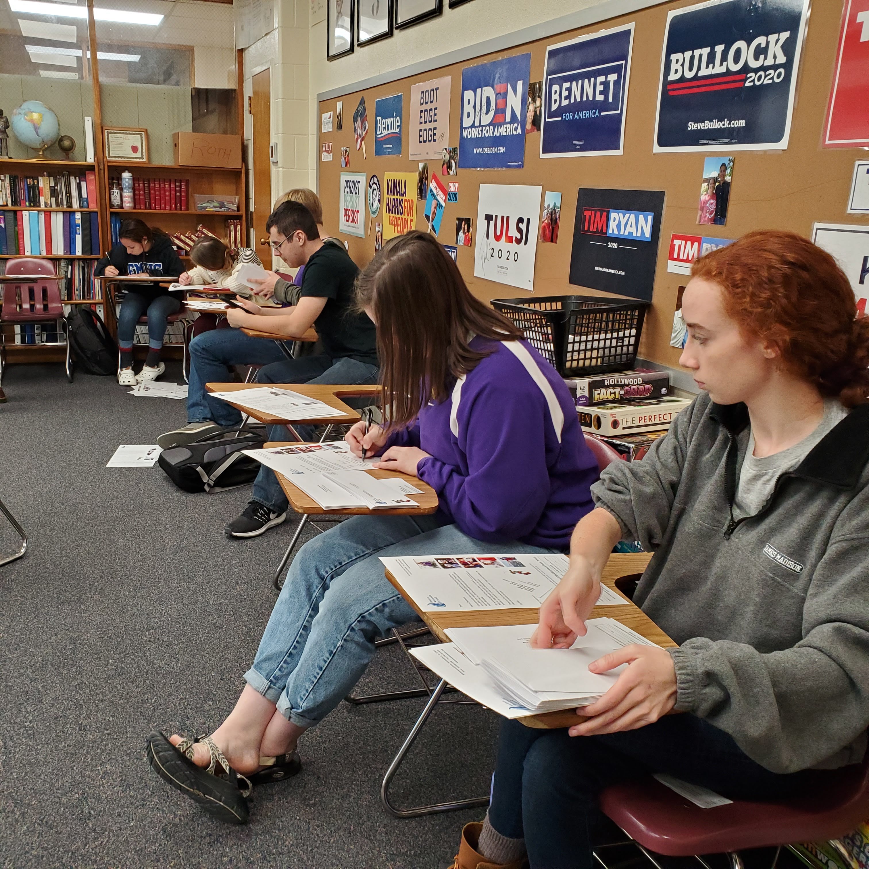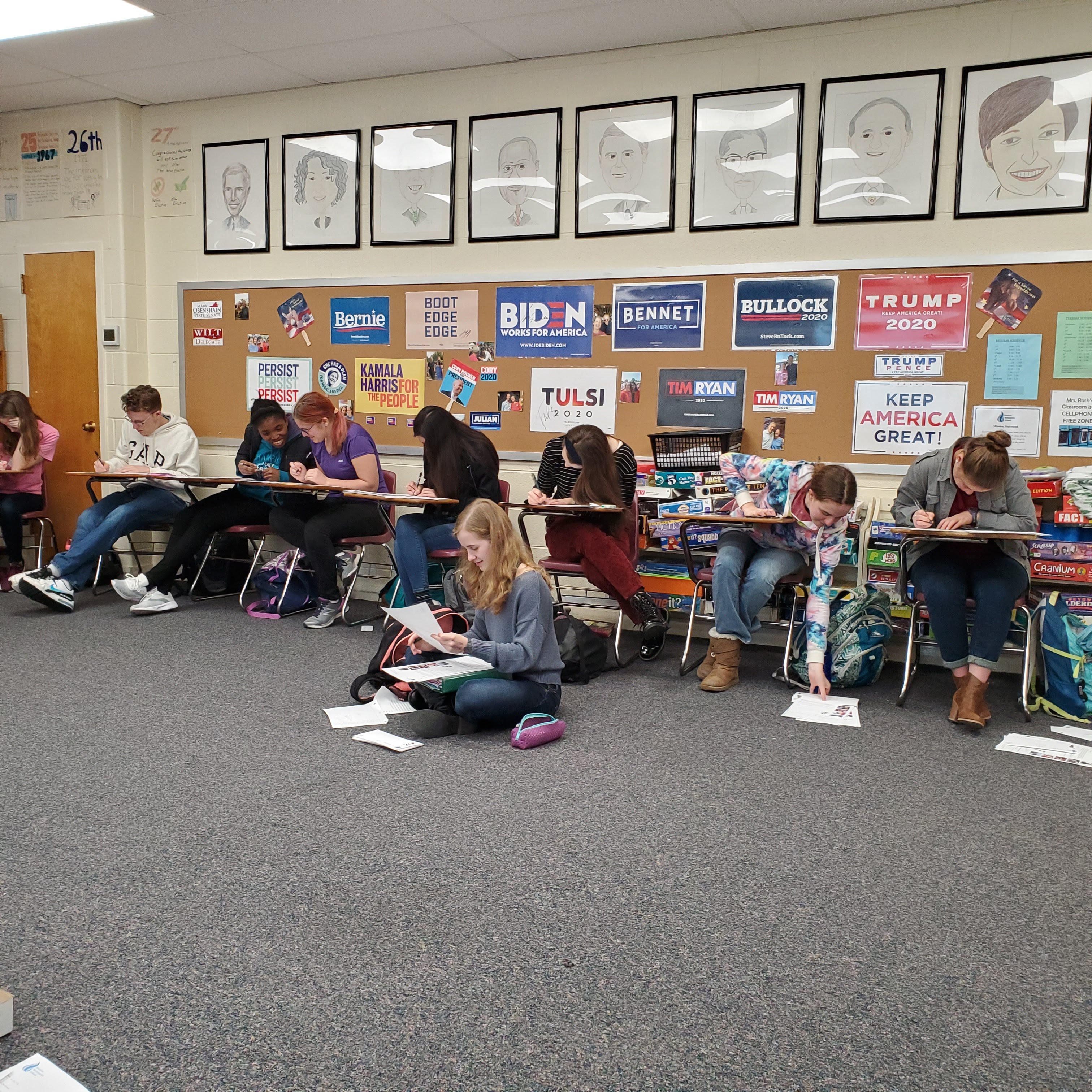 For the first time in memory, the senior class has 100 percent participation in the Christmas Fund Drive. Shannon Roth, government teacher, wove letter writing into a government lesson on civic engagement, spurring much of the energy. Learning to write to constituents and express opinions and passions is a key way to engage in our government, she noted. Students and Mrs. Roth wrote letters during a class period as they reviewed the how-tos of letter writing and advocacy for a cause.