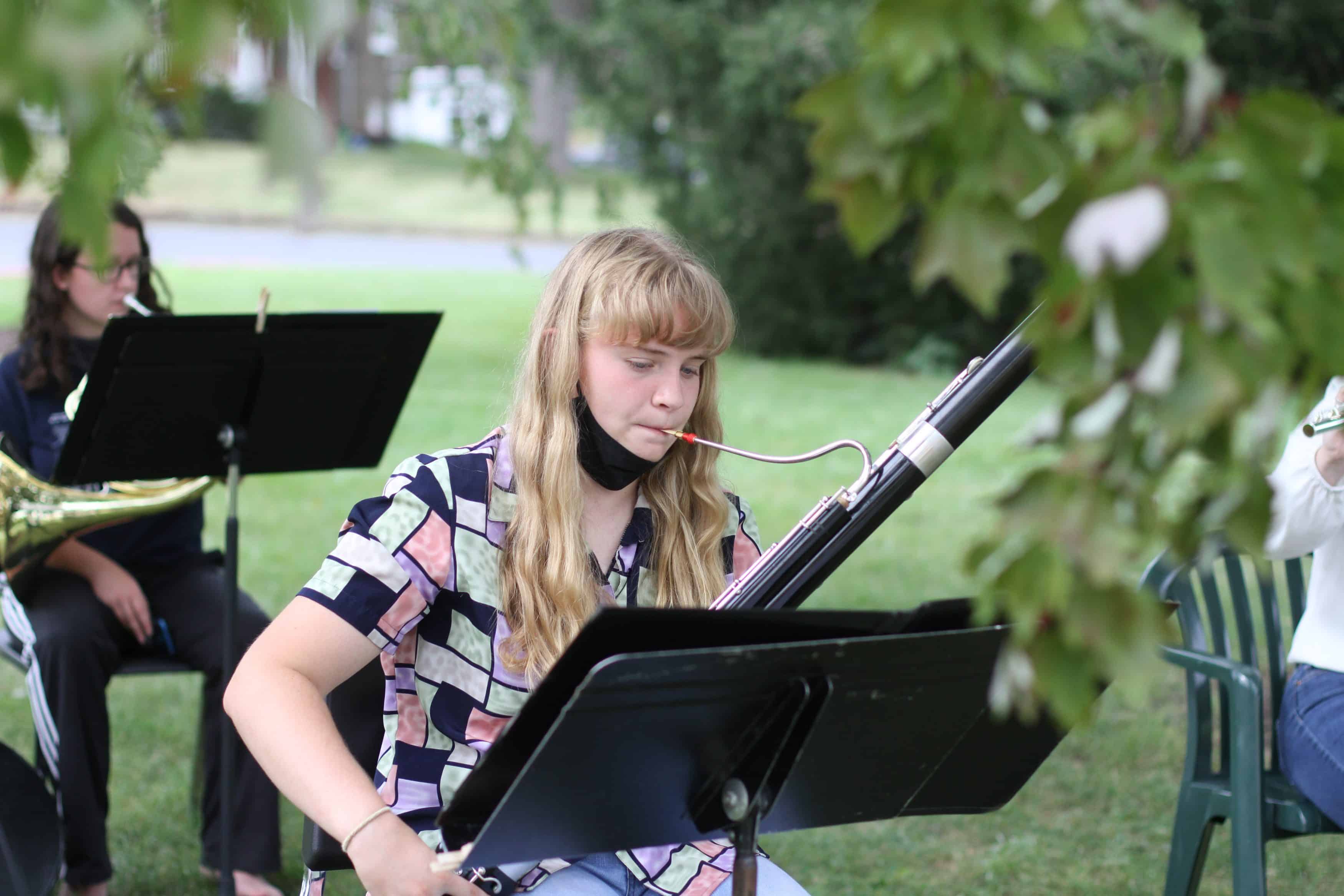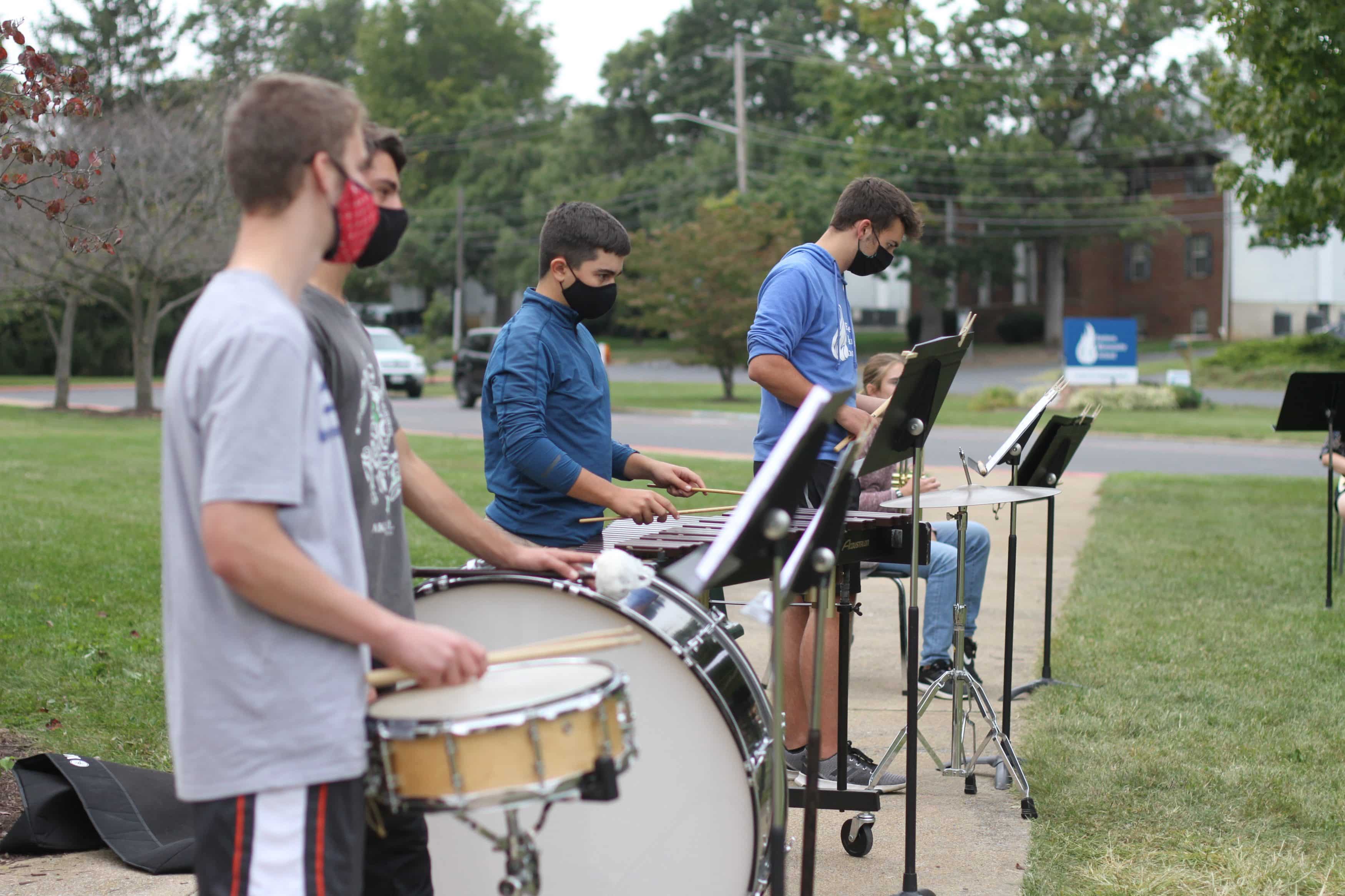 Figuring out how to safely practice was crucial in having the band be successful. Currently, band and wind orchestra classes are practicing unmasked and socially distanced outside. However, with cooler wet weather on the way, they need a way to practice within the school safely.