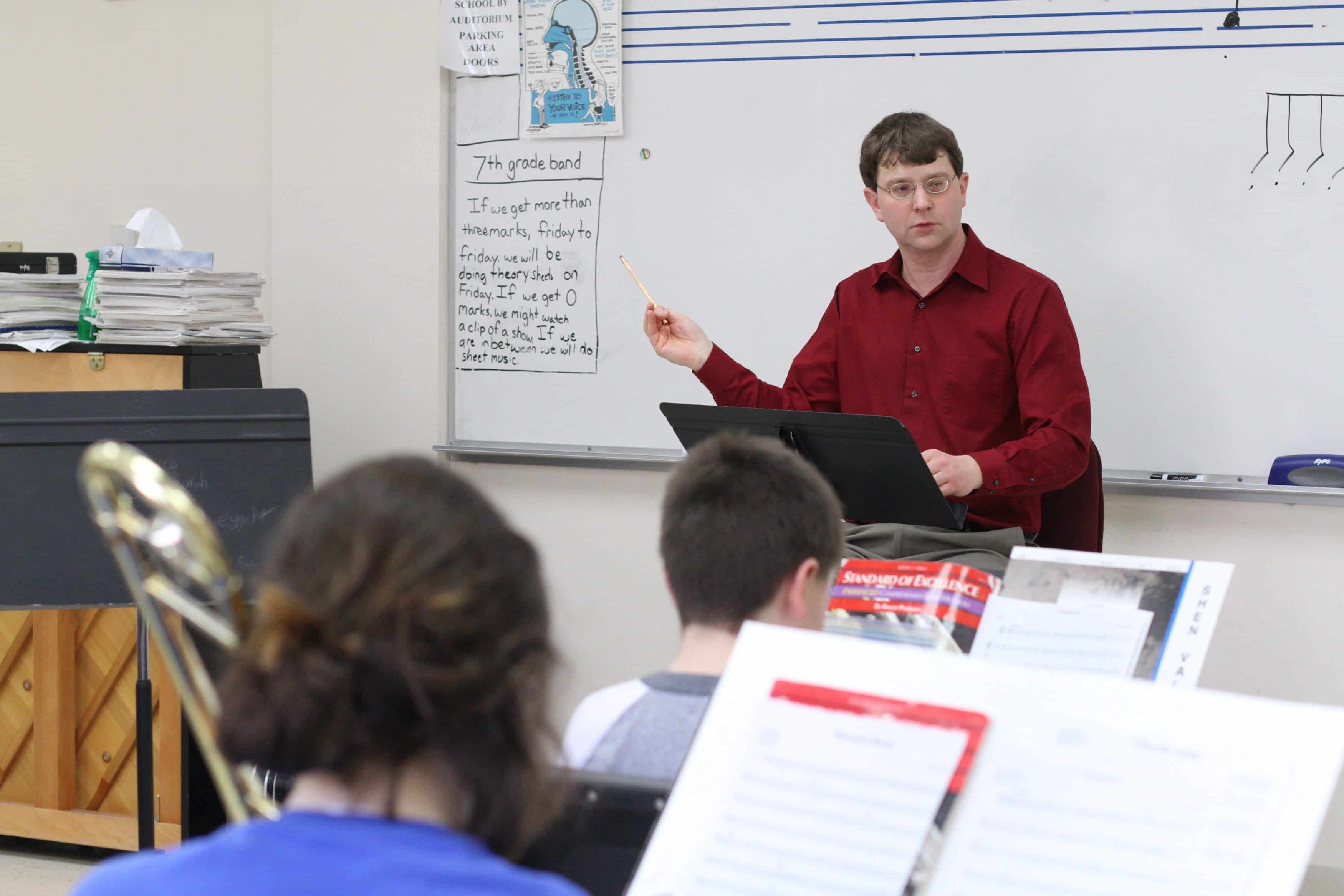 Buchanan graduated from Eastern Mennonite University in 2003 and learned of the open band position at EMS through one of his professors. While he didn’t know much about the school at the time, he accepted the offer nonetheless. “I vividly remember thinking, ‘What am I doing here?’ sitting in my truck my first year of teaching. However, teaching at EMS taught me about myself, what my limits are, and patience.”