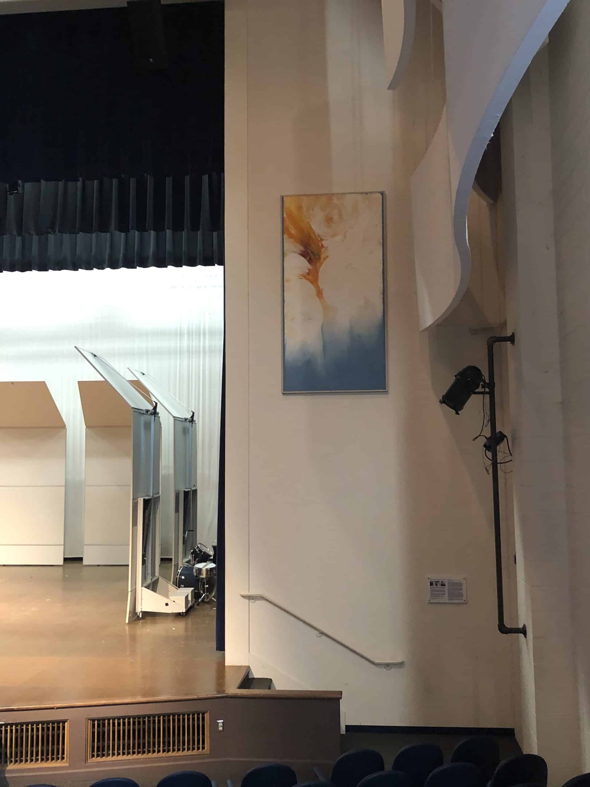 Family, friends, and former colleagues joined the service which included a blessing for the painting Shekinah. Esther originally created the piece for the former Chapel space (now known as the Commons). It was moved to the hallway entrance to the new auditorium in 2005 when the arts wing was constructed. This fall it was moved into the auditorium where it can once again draw viewers into a worshipful space.