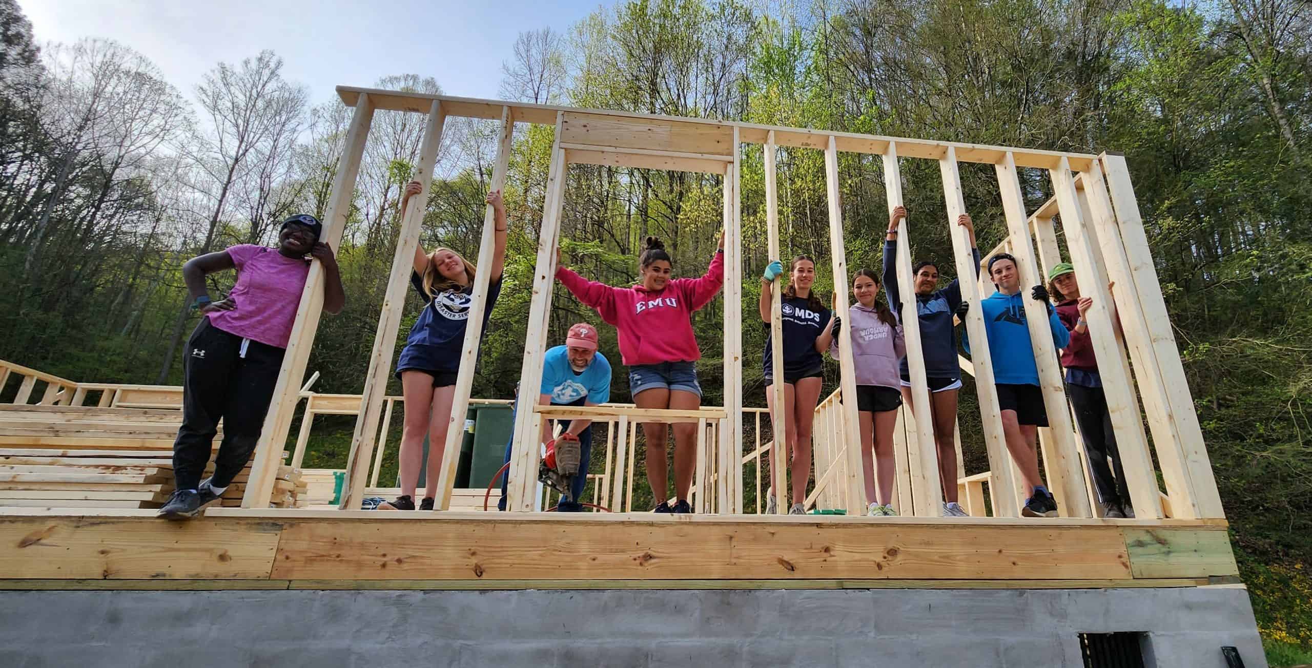 Students in this spring’s Mennonite Disaster Service (MDS) class at Eastern Mennonite School constructed 10 exterior and 18 interior walls that will be transported to Hurley, Virginia, for a new home in a community still recovering from an August 2021 flood.