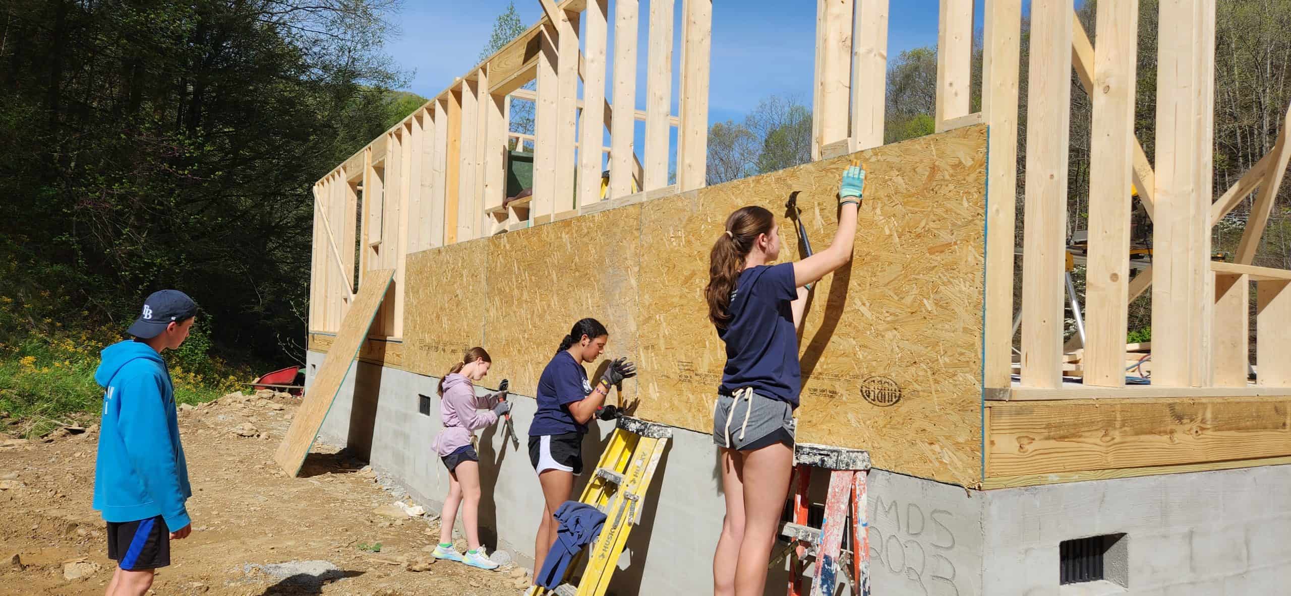 The students worked hard and found a sense of accomplishment in building a porch and framing a house in the four work days they worked in Hurley.