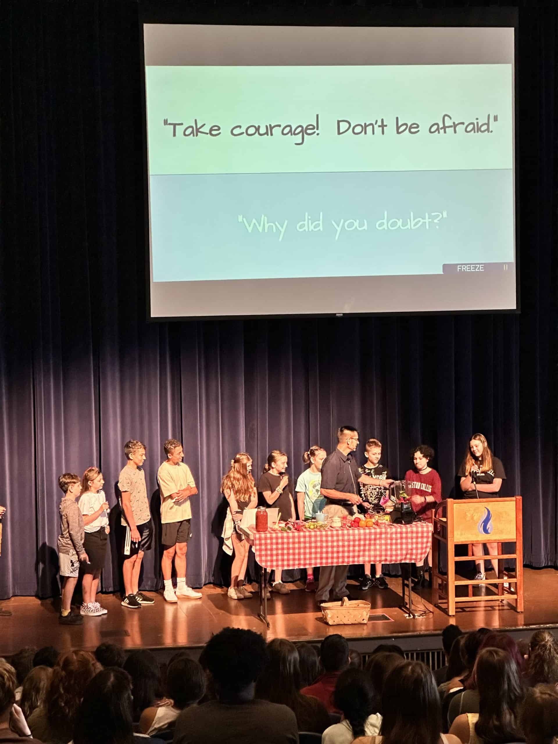 Leaman’s main message to the students was to be courageous and work towards discovering their identity this year as God’s image created in them. He urged them to embrace their uniqueness and bring their diversity to EMS daily, as the school needs their varied perspectives to be the fullest picture of what God has called us to be. Leaman concluded by reminding students that they are at the right age to fail, test themselves, and start again and that EMS teachers, coaches, staff, and other students are here to support them through every step of their journey.