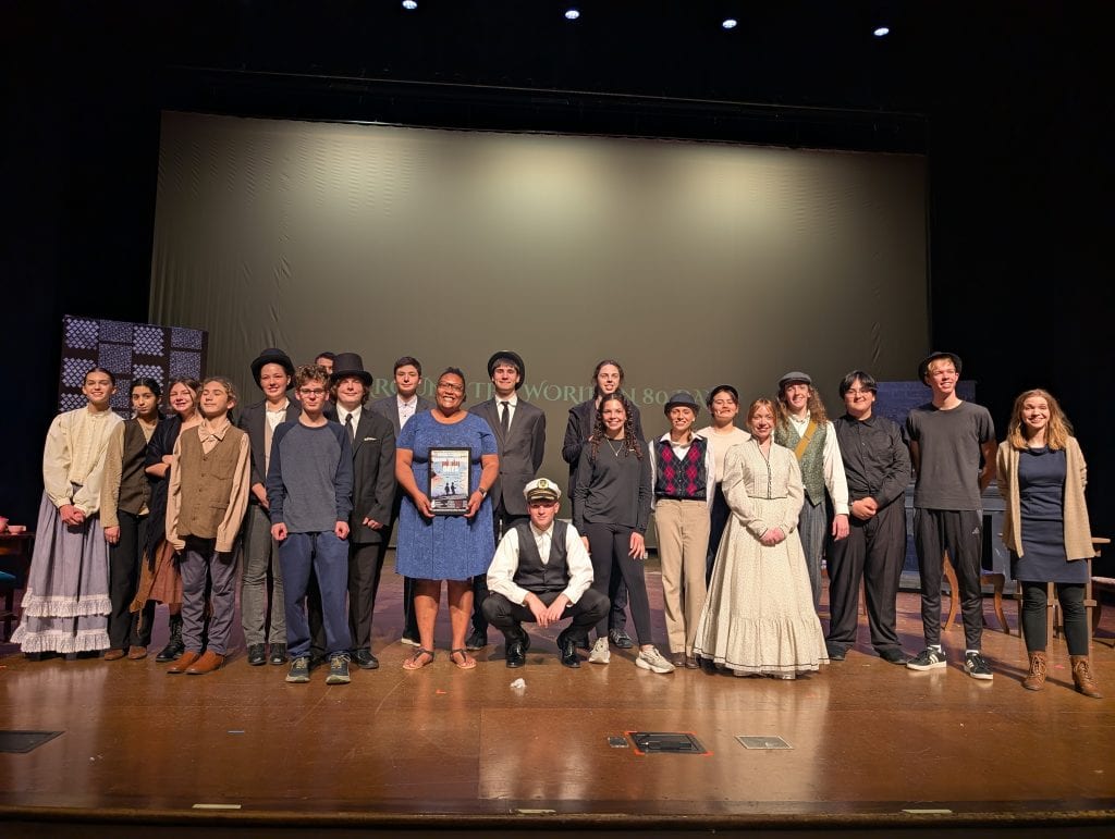 Durante el fin de semana de Halloween, nuestros alumnos de bachillerato ofrecieron una encantadora representación de “La vuelta al mundo en ochenta días”, codirigida por Elizabeth Eby y Liz Marin '10. Esta comedia dramática, escrita originalmente por Julio Verne y adaptada para el teatro por Laura Eason, fue un gran éxito y puso de manifiesto la creatividad de nuestros alumnos. ’En un momento del ensayo…