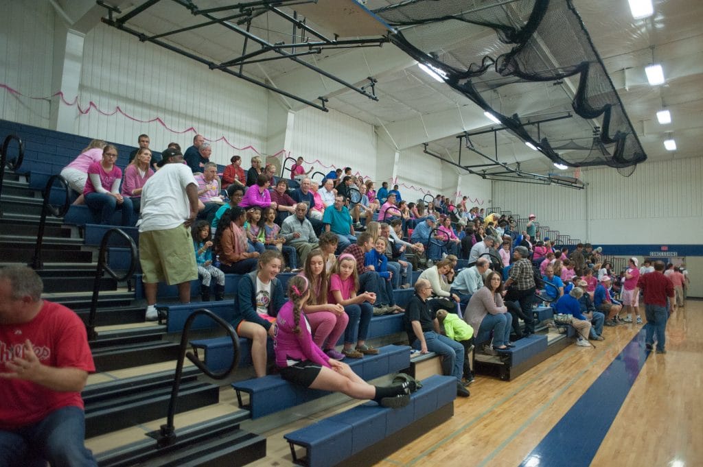 - a full-size gymnasium equipped with six basketball rims or two volleyball courts and locker room facilities.
